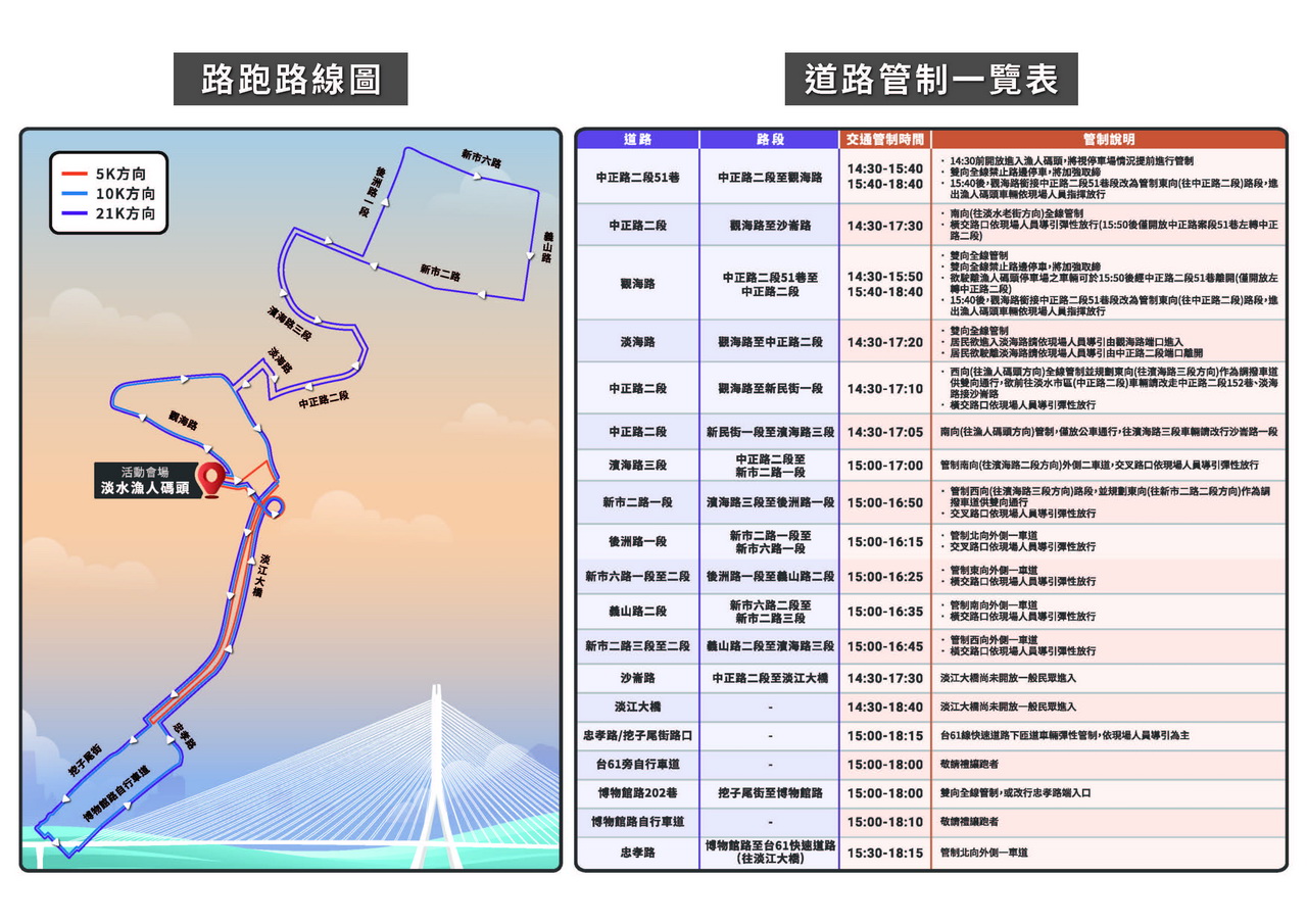 「2026 淡江大橋通車路跑暨自行車活動」今、明(18、19)兩天登場,主辦單位公路局新工北為確保賽事順利進行,並維護參賽選手的安全,活動期間淡江大橋將依活動規範進行交通管制。