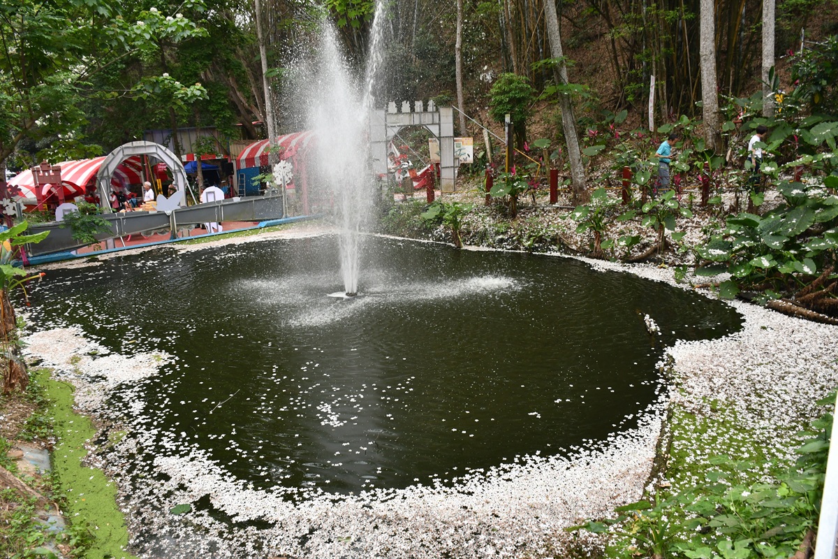 ▲彰化市福田賞桐生態園區生態池落花飄浮的美麗景致。(圖/記者蕭麗鳳攝)