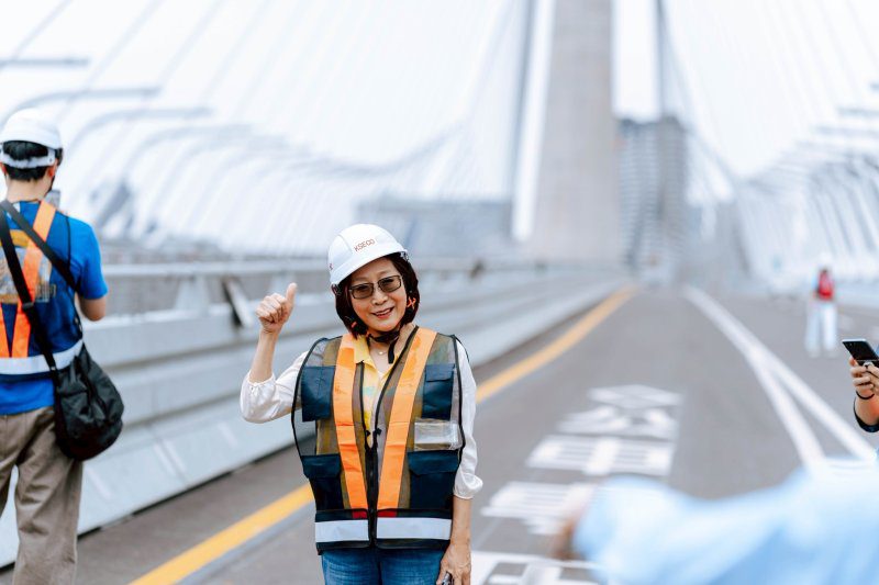 淡江大橋採單塔不對稱斜張橋設計,完工後將成為全球同類型橋梁中跨距最長之一,其結構複雜度極高,曾讓國際工程界卻步,甚至歷經7次流標。面對技術挑戰、疫情衝擊與原物料成本飆升等多重壓力,最終仍由工信工程完成興建,展現國內工程團隊的韌性與專業。