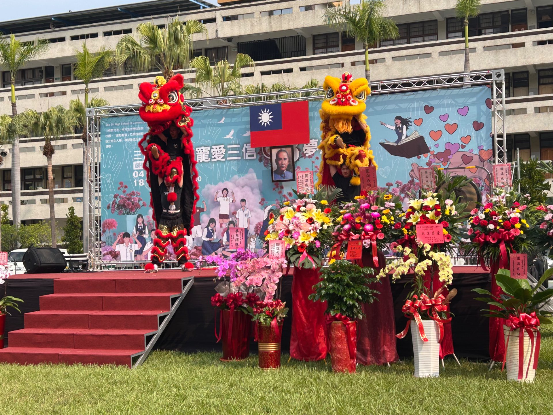 當典禮由樂隊演出揭開序幕,祥獅獻瑞象徵校運昌隆,董事長、家長會與校友會代表齊聚一堂,共同見證三信家商邁入新里程的重要時刻。