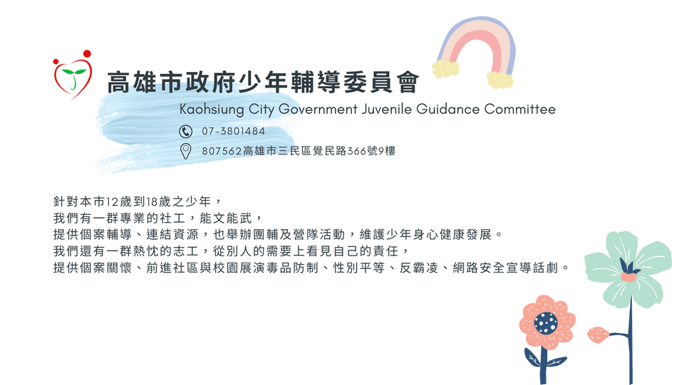 高雄市少年警察隊與少年輔導委員會長期推動校園宣導,透過自107年成立的宣導話劇團,以寓教於樂方式傳遞法治觀念。劇團由來自各行各業的志工組成,雖非專業演員,卻透過持續培訓與排練,展現高度投入與使命感。