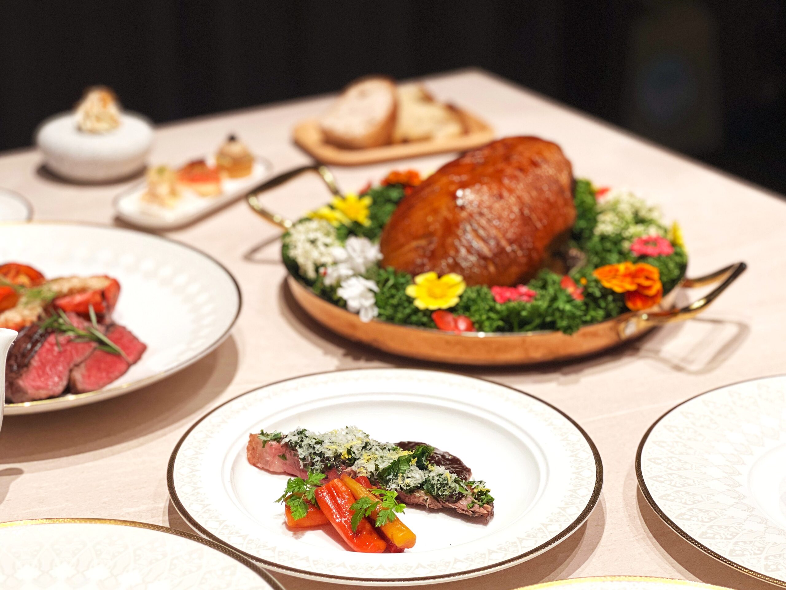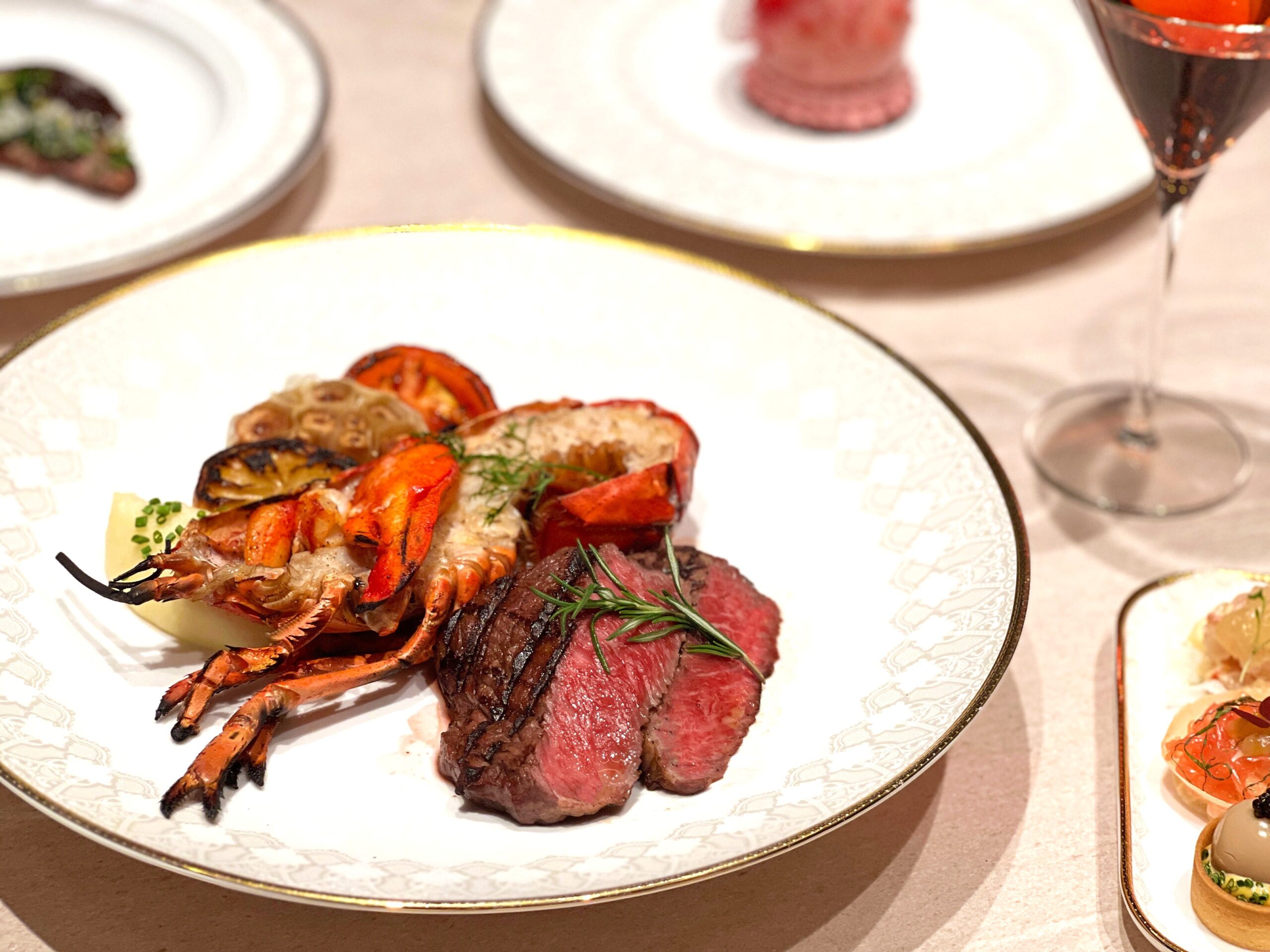除了光影互動,餐盤上的誠意也同樣十足!特別推出「寵愛媽咪海陸大餐」,共八道超豪華精緻料理,每套NT$3,980+10%。由「胭脂蝦塔塔、柚子蟹肉塔、魚子醬鵪鶉蛋」揭開序幕,中間穿插自家烘焙酸裸麥及佛卡夏,接續呈現「番茄與芝麻葉沙拉」、「法式龍蝦濃湯」、特選熱前菜「爐烤熟成玉露鴨胸」以精準火候鎖住鮮美肉汁,襯以羽衣甘藍脆片與干蔥醬堆疊層次。並以原木炭火炙烤的「波士頓龍蝦半隻」及「美國頂級肋眼菲力6盎司」雙主菜作為饗宴巔峰,在高溫火候下,龍蝦的清甜鮮彈與牛肉的濃郁脂香完美交織,帶來極致的海陸盛宴。最後由紅寶石巧克力蛋糕與精選咖啡茶飲劃下完美句點,多樣化的餐點安排,正是為了幫平日辛勞的女性們好好補充能量。此外,現場同步提供多款 NT$2,480+10% 起之經典義法套餐,滿足多元聚餐需求。為致敬每位綻放光采的美麗女性,活動期間凡女性賓客入座,皆招待專屬粉紅氣泡酒乙杯,現場亦同步提供花坊推薦與代收服務,在歡慶佳節之餘,得以優雅從容地為生命中重要的她準備專屬驚喜。