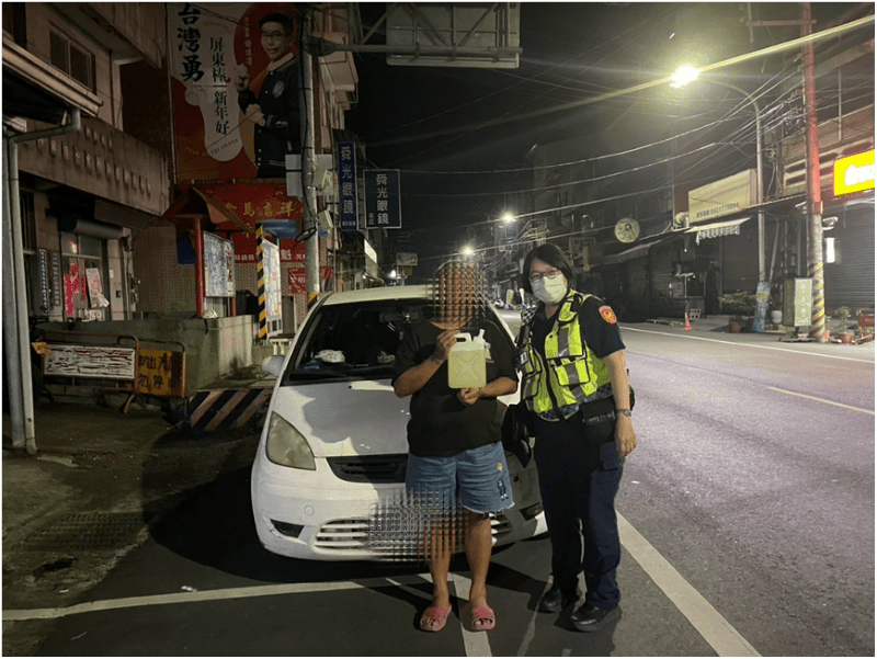 經員警查知,這位40多歲,家住三地門鄉的江姓女子表示,她開車載一名嬰兒要回家,行經龍泉地區時,發現車輛燃油耗盡,無法繼續行駛,還好有看見警車,便揮手示意求救。警方考量深夜母子人身安全,先載送江女前往加油站購買汽油,再陪同返回車輛停放處加油,最後順利啟動車輛,讓江姓母子能順利返家,江女對警方暖心協助,深表感謝。