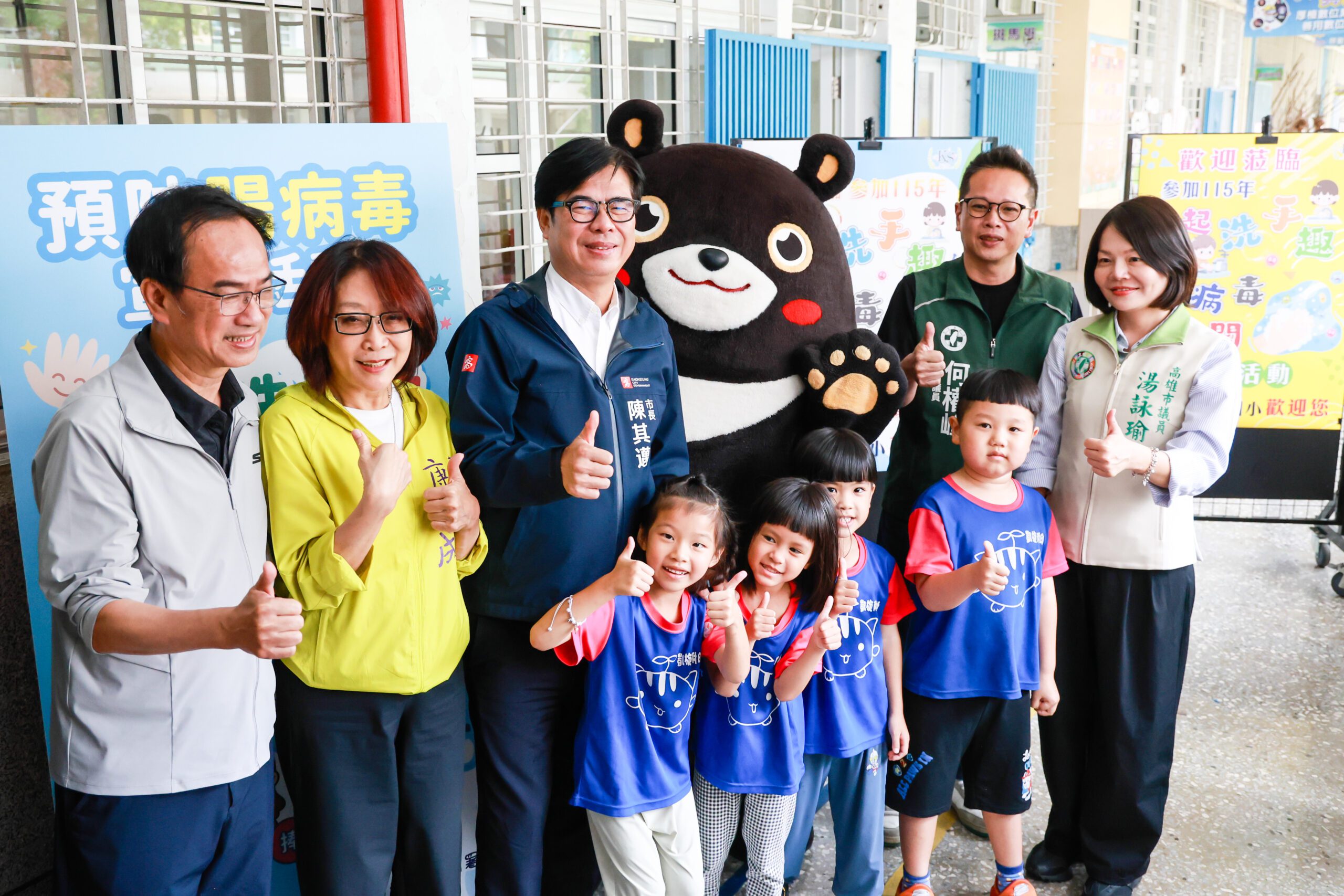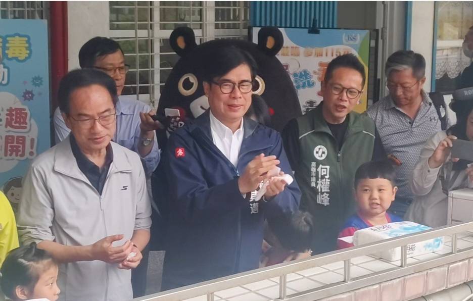 活動現場氣氛熱絡,市長陳其邁親自帶領學童唱跳洗手歌,透過節奏輕快的旋律與動作,幫助孩子們記憶正確洗手步驟。衛生單位指出,腸病毒主要透過接觸傳染,落實手部清潔是最有效的防疫方式之一。