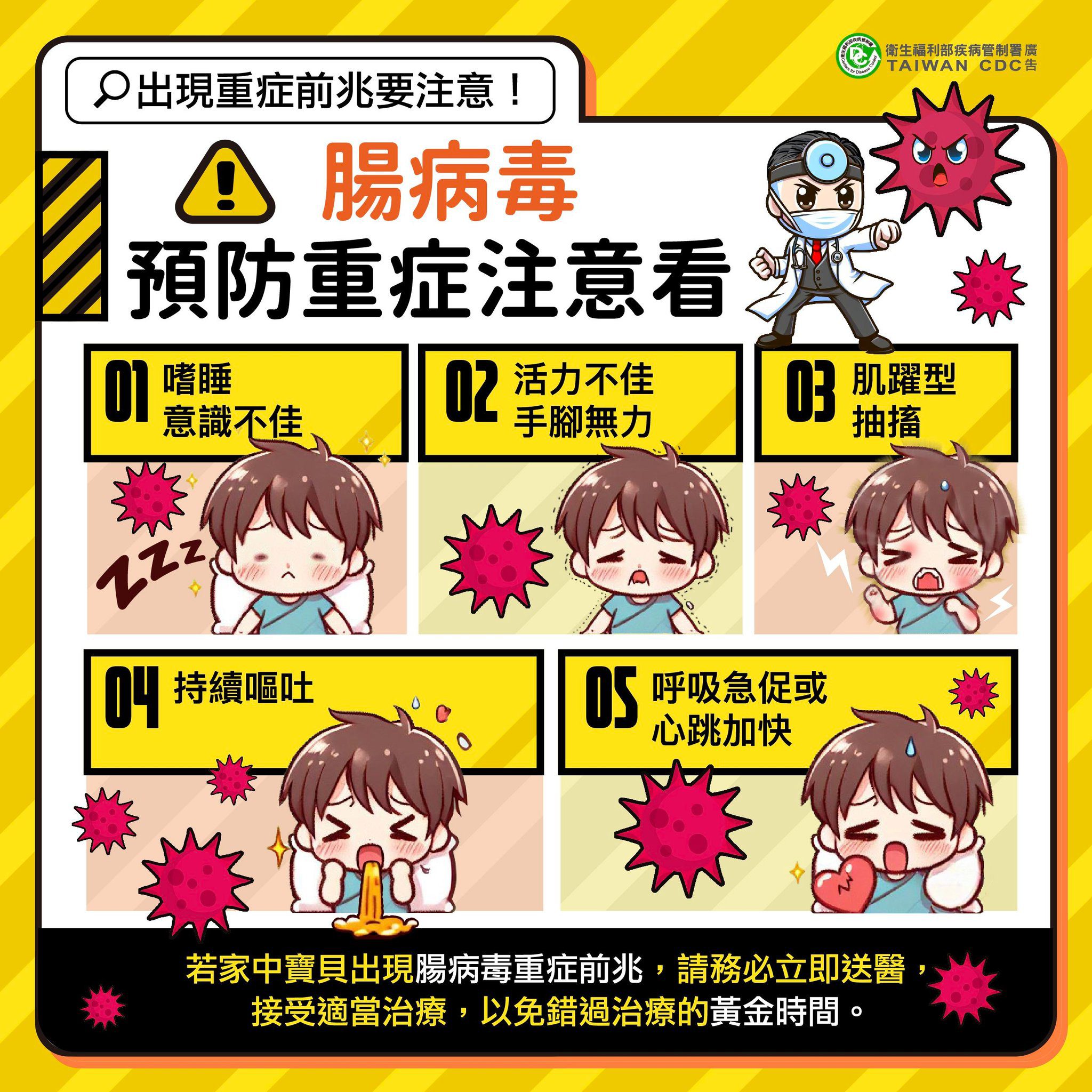 特別值得注意的是,5歲以下嬰幼兒為腸病毒重症高風險族群,一旦出現嗜睡、意識不清、手腳無力、肌抽躍或持續嘔吐等症狀,應立即送醫。相關資訊可透過衛生福利部疾病管制署或高雄市政府衛生局官網查詢,亦可撥打防疫專線1922或07-7230250諮詢。