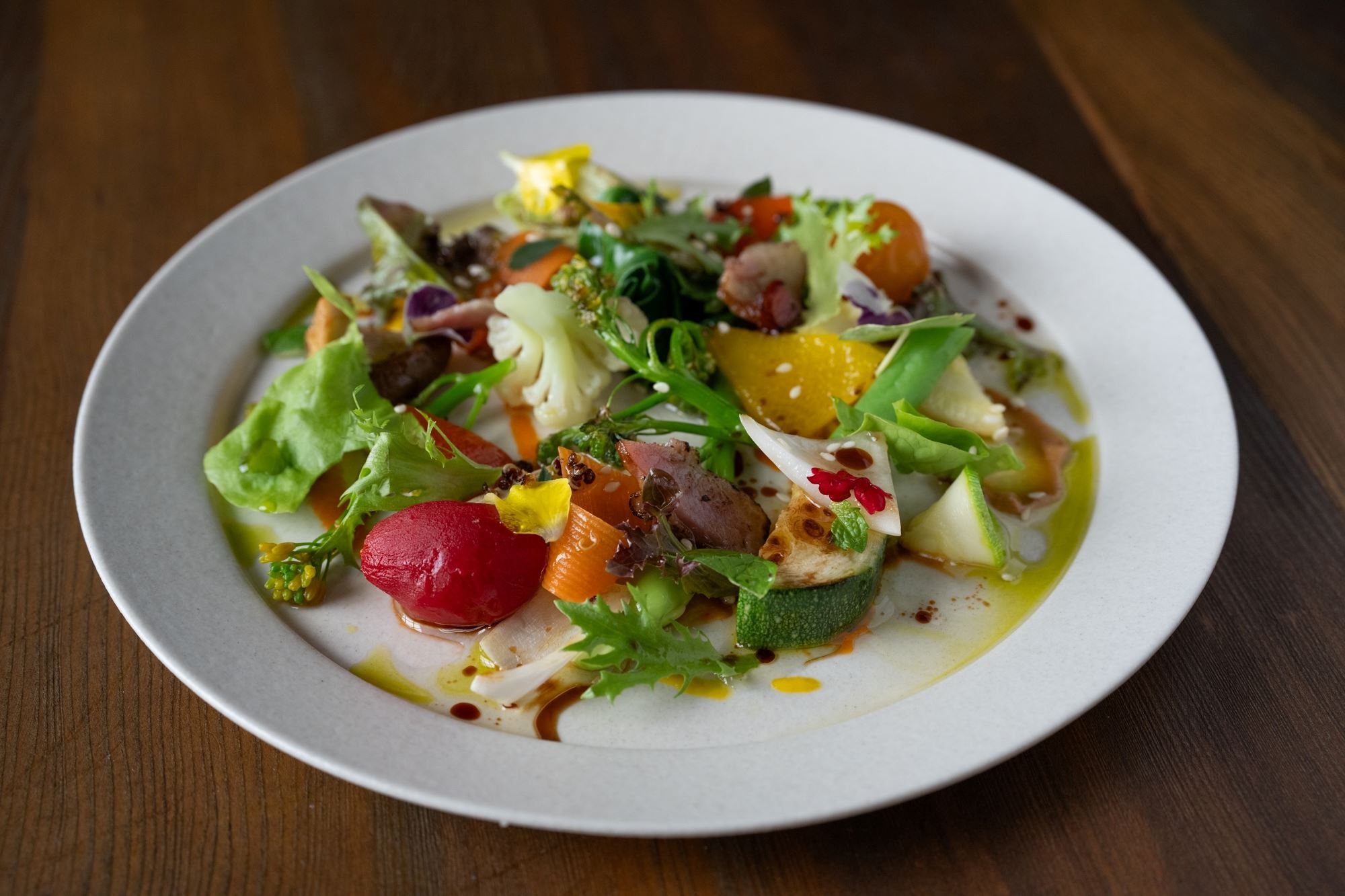 主廚邱泓訓曾於高雄米其林綠星餐廳 THOMAS CHIEN 擔任主廚長達11年,2024年返鄉創立品牌「LAND」。本次主廚結合在地的釀醬及食材元素,將客庄日常的「粄條」、「鹹豬肉」與「酸菜」透過法式料理手法增添文化共融感受,確保每位賓客能獲得飽滿且精緻的味蕾體驗。