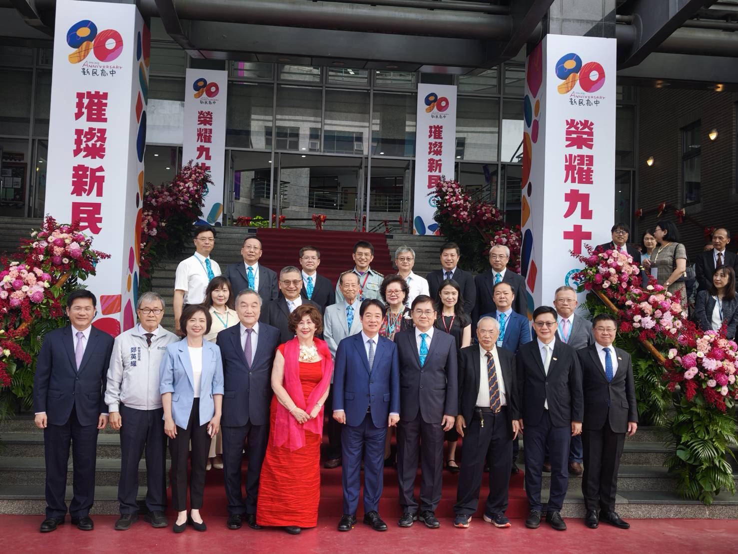新民高中4月18日舉行創校90週年校慶慶祝大會,以「榮耀九十・璀璨新民」為主題,總統親臨致詞祝賀,現場匯聚中央、地方重要貴賓、國際來賓、校友及全體師生,共同見證新民九十年來的重要里程碑,氣氛隆重而熱烈。