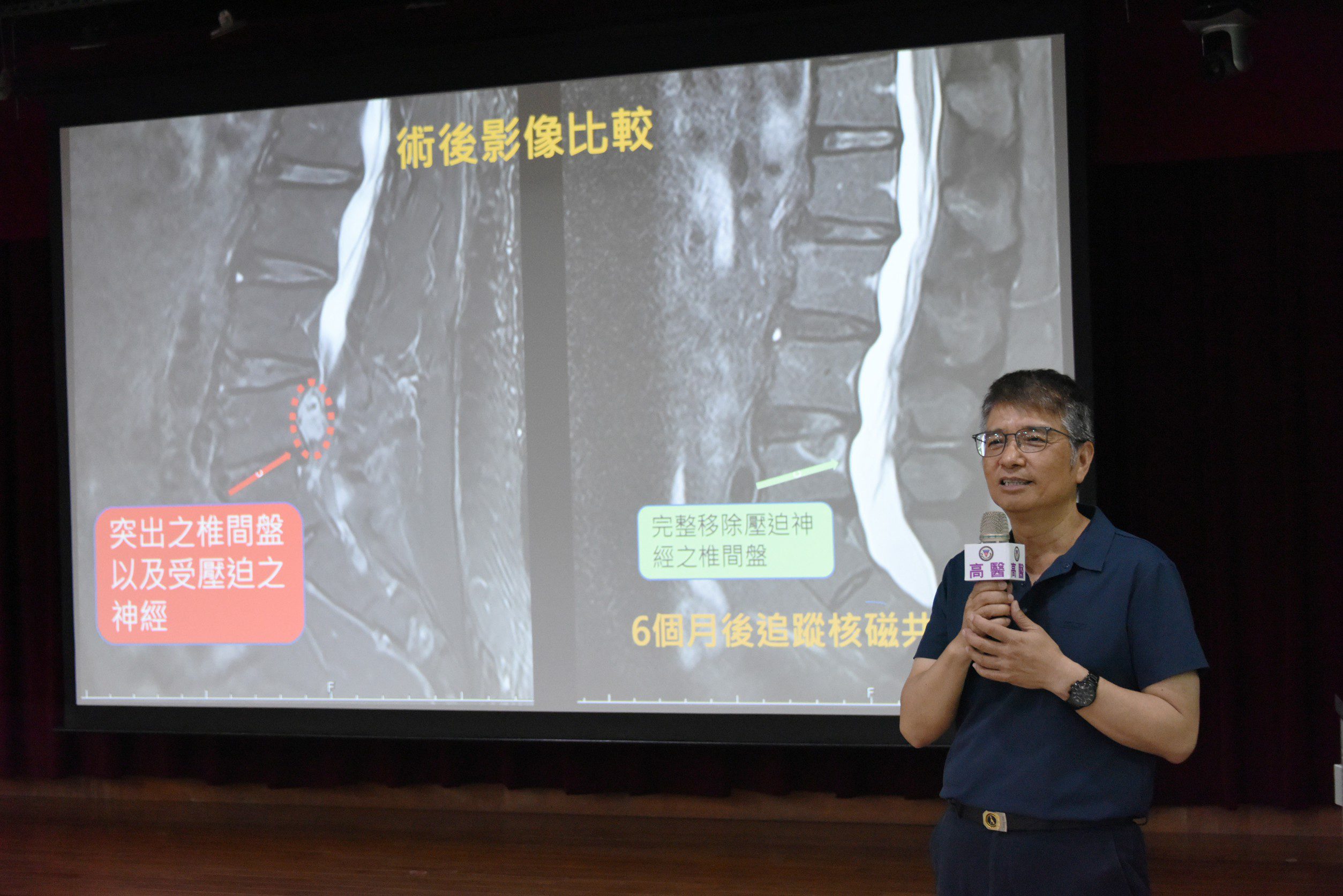 高醫陳崇桓醫務秘書表示,高醫身為附設醫院及醫學中心,以病人為中心,高醫骨科部2000年即派遣醫師前往日本學習脊椎微創內視鏡,成為國內微創脊椎手術先驅之一,能以最適當手術及最微創的方式做神經減壓,讓病人能得到最佳的病痛解除效果。傳統上,巨大游離型椎間盤突出的患者,大多需接受較大傷口之減壓手術,甚至進行脊椎融合手術。然而經完整評估後,醫療團隊決定採用脊椎微創內視鏡手術進行治療,以降低手術侵入性並保留脊椎結構。