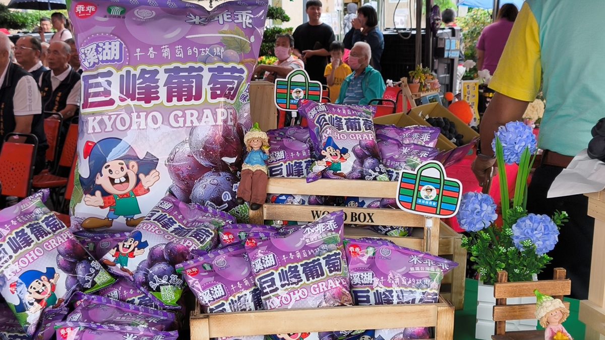 ▲溪湖在地的溫室早春葡萄產業與業界合作推出的巨峰葡萄風味米乖乖。(圖/記者蕭麗鳳攝)