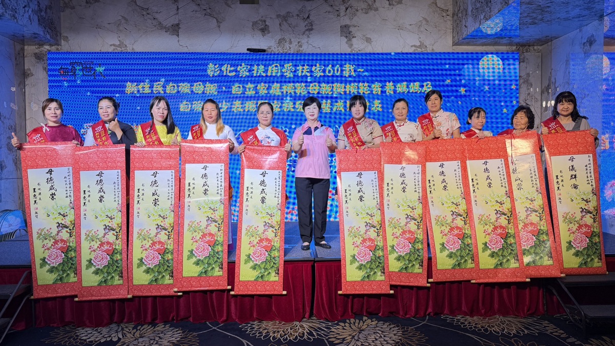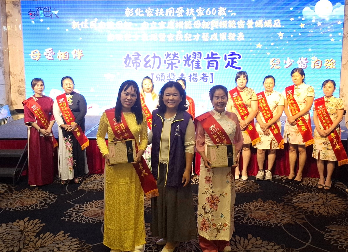目前彰化家扶共扶助1741戶經濟弱勢家庭,占比16%為新住民家庭,今天受表揚的10位新住民自強母親用跨海的堅毅,獨自撐起一片天,展現了新住民女性如蒲公英般堅韌的生命力。現場最令人動容的莫過於 10 位來自不同國籍的新住民母親。她們遠渡重洋嫁到台灣,面對語言不通、文化隔閡,更在丈夫早逝或重病後,隻身挑起家計重擔。來自越南的阮氏燕媽媽,面對丈夫突然罹癌,只能身兼兩份工,咬牙撐起照顧2名年幼的女兒。阮氏燕媽媽用生澀的中文說道:「只要孩子能平安長大,再辛苦我都願意。」另外來自中國廣西的玉嬋媽媽,先生因罹癌過世,為了給3位孩子穩定的生活,玉嬋媽媽展現出為母則強的精神,親自購買器材組裝屬於自己的中西式早餐行動餐車,每日清晨3點多準備食材,6點到售賣地點,直到售完回到家已經近中午,無論炒麵,飯糰,壽司,漢堡,吐司,蛋餅通通難不倒她,這台餐車不僅是玉嬋媽媽經濟獨立的來源,更是她對孩子未來的承諾!