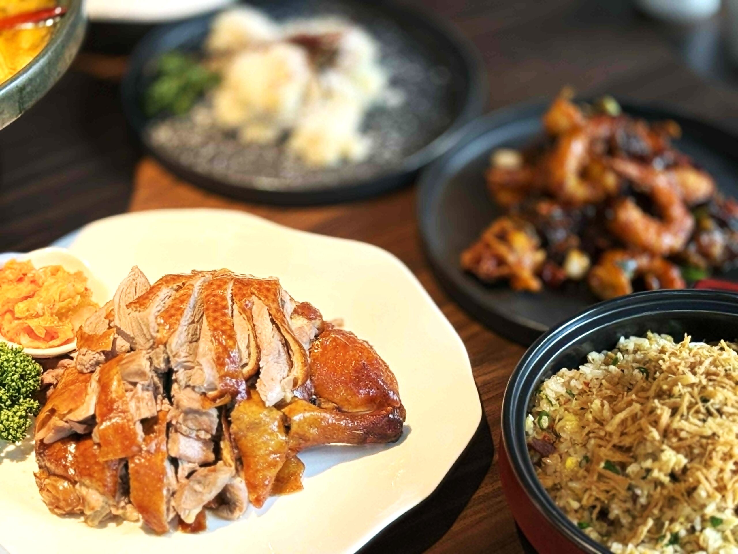 ▲江魚美出好菜,干貝金絲XO功夫炒飯、招牌冰梅燒鴨、江湖麻辣蹄花、雪酥椰香中卷、川香口水雞皆是招牌。(圖/費奇攝)