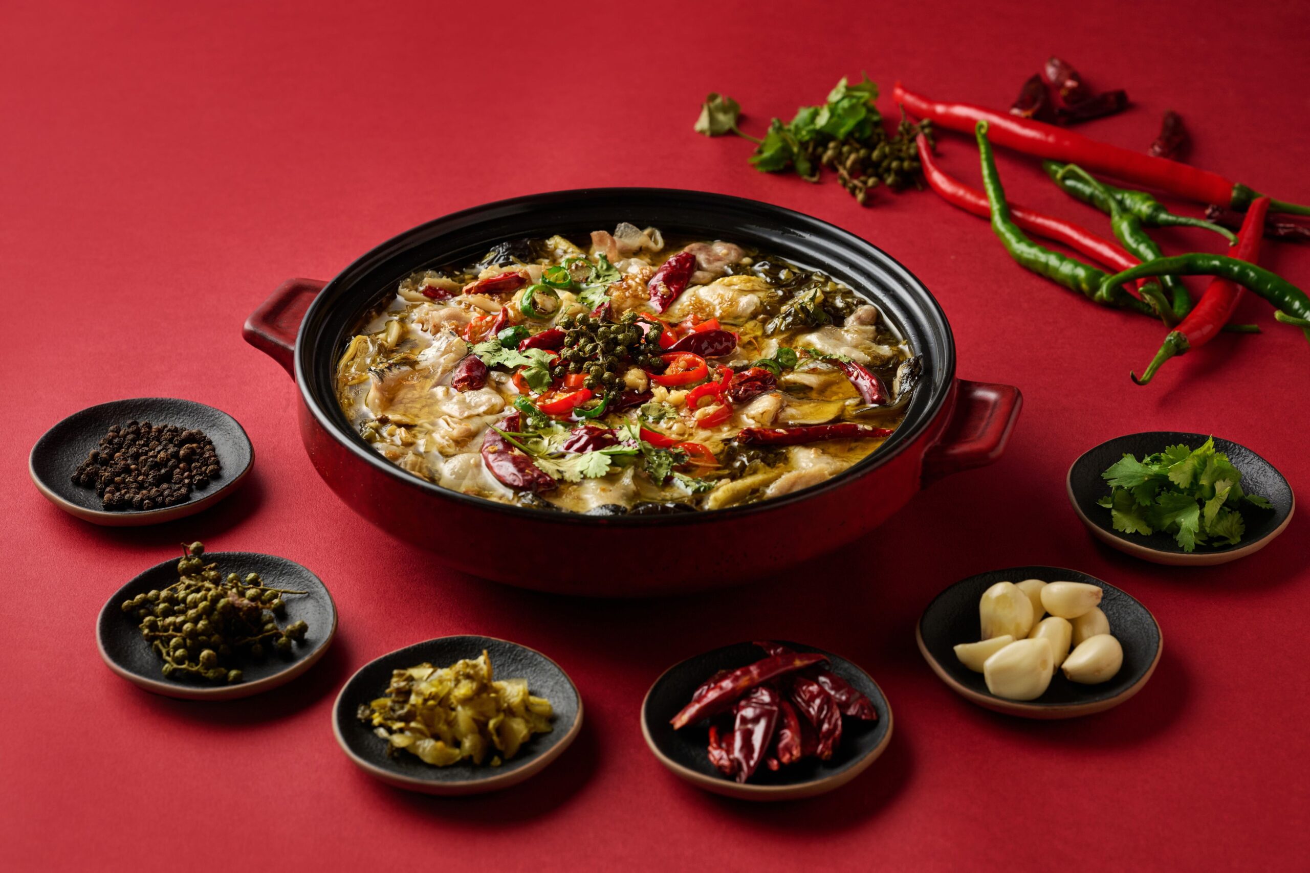 除了店景獨樹一格,餐飲也是頗具米其林規格。葉祥全主廚來自屏東16歲國中畢業就全省餐飲跑透透的勤學廚藝。曾在桃園桃源小館深受川湘大廚薛石柱的帶領,台中小吃攤起家的紅油抄手「周抄手餐飲品牌」更是他的廚藝養成,其他如高雄辦桌小吃松柏飯店、東亞大飯店川菜、渴望會館酒席主廚,與外省師傅交手多回並依序習得寶川、岡山豆瓣醬的運用得宜,葉祥全主廚與中華美饌交流協會翁茂安大廚更是換帖的好兄弟。