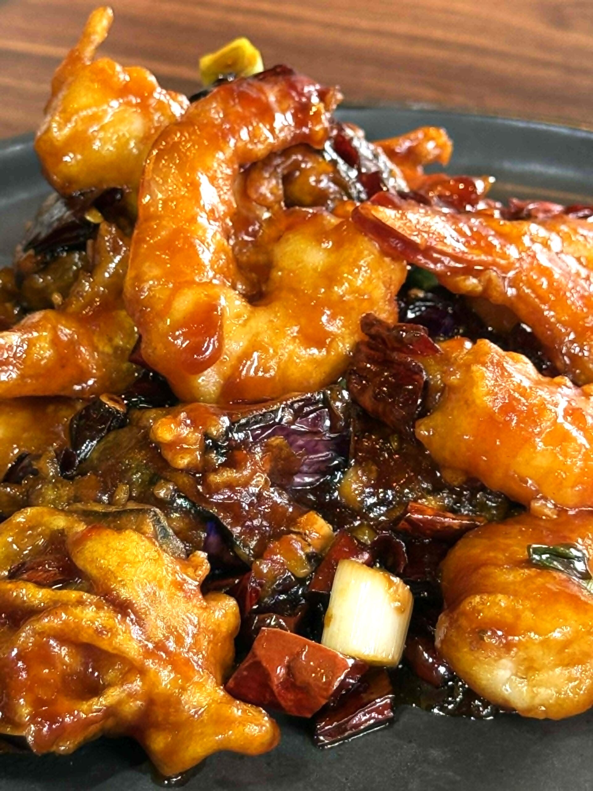 ▲特別向成都米其林一星馬望子取經的宮保茄香蝦球,香辣美味無法擋。(圖/費奇攝)