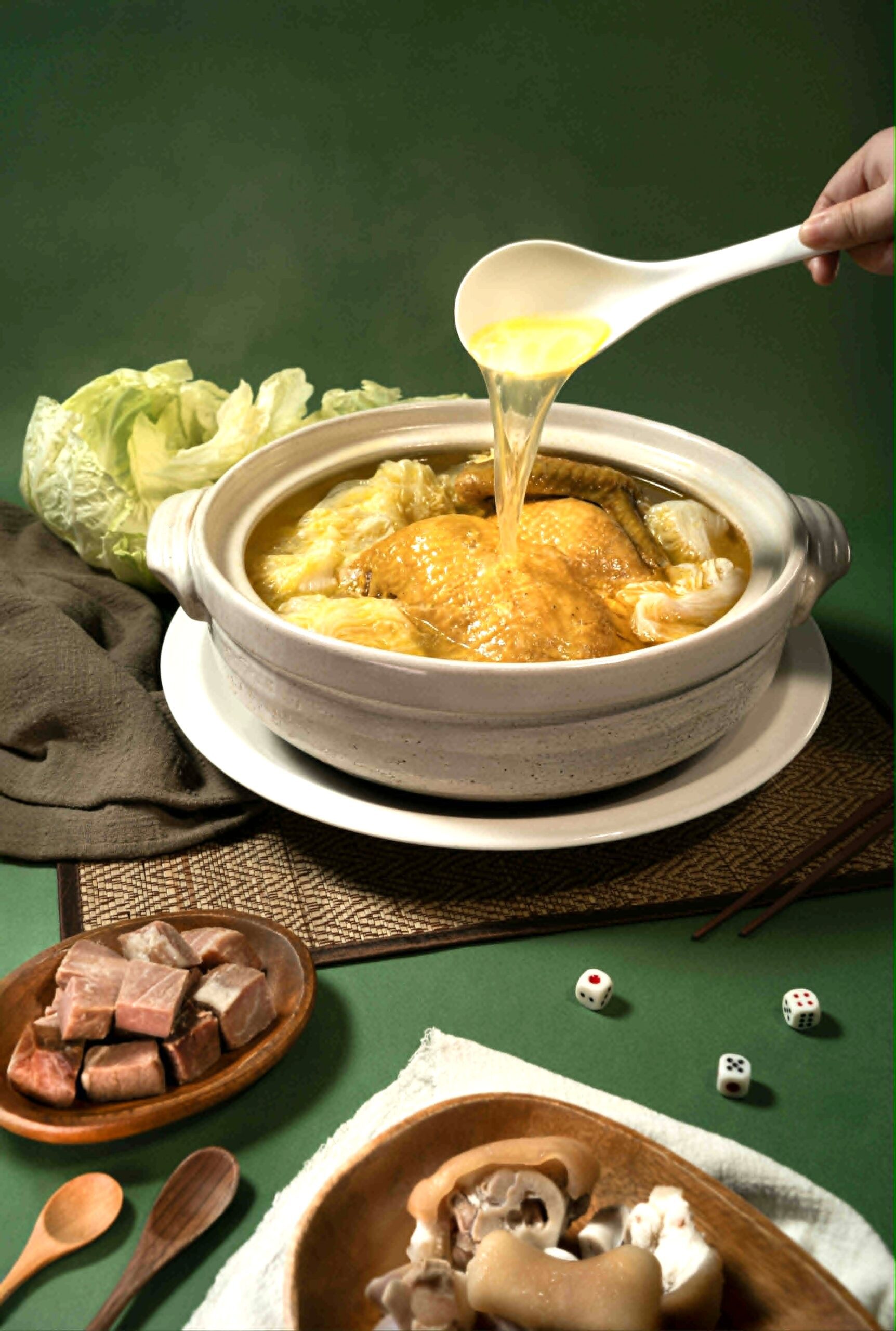 攤開江魚美中式餐廳,若說左手是川菜拿手、右手上海菜本事,隱藏版菜單肯定是葉祥全主廚不能說的秘密。中和太陽餅尺寸的金芋鴨方酥,小塊鴨方掌握訣竅,在麻辣酸甜鹹生香的七滋八味中,烹調出家的好味道。金華火腿砂鍋白菜燉雞湯如開水白菜般清湯掛水,珠貝、家鄉肉、豬腳煲湯2.5小時吊湯靈魂,濃縮再濃縮的精華,梨山大白菜五六片便是絕美好湯。RITA更對湯鍋的二次利用給出小撇步,把殘羹菜餚包回去,加入關廟麵與雞蛋,蔥或花椰菜一把下就是家的味道。