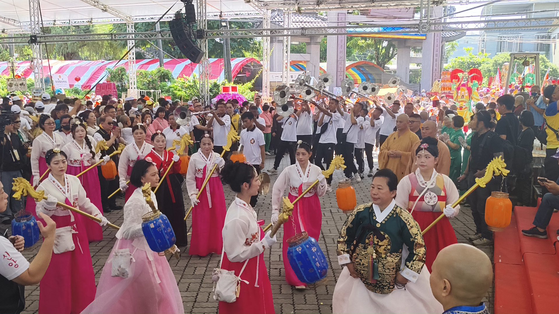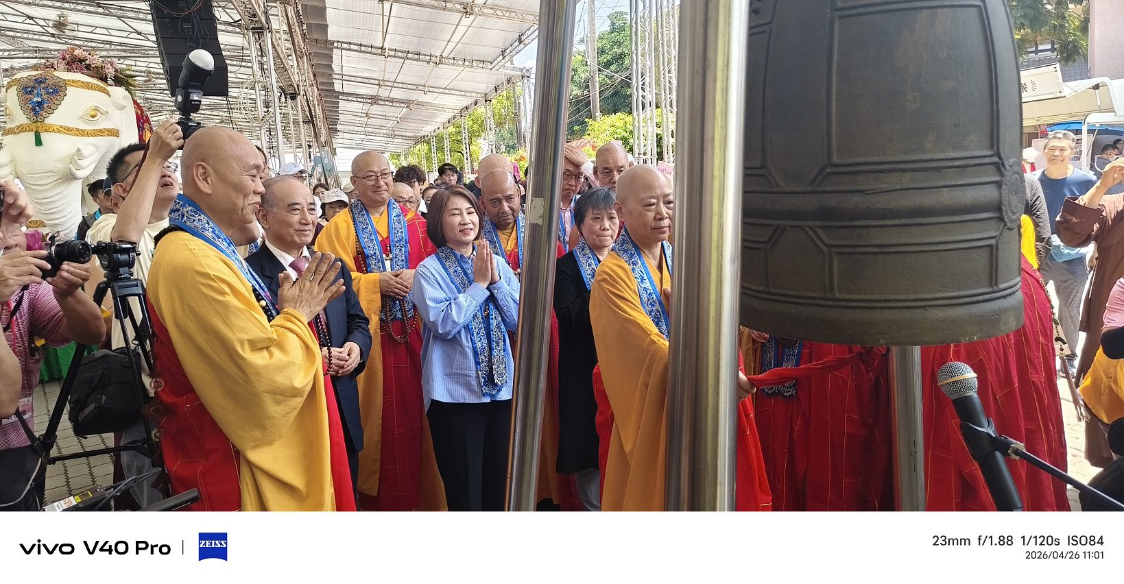 典禮中,台灣佛教總會理事長會常大法師、內政部長劉世芳、屏東縣長周春米、前立法院長王金平、國民黨主席鄭麗文等人齊心叩鐘祈福,透過祈願文祝禱、宗教獻供與佛前大供儀式,展現對世界和平、風調雨順與國泰民安的共同期盼。妙光禪寺內外梵音繚繞、莊嚴肅穆,萬人同心的信仰力量,凝聚出撼動人心的安定能量。