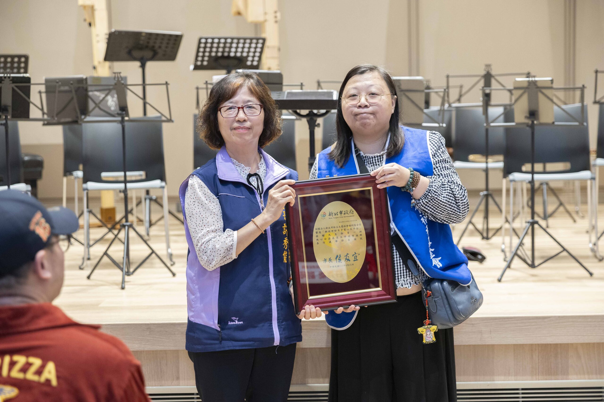 ▲會局副局長許秀能代表侯友宜市長回贈感謝牌給財團法人新北市私立文豪社會福利基金會代表林映如(右)。(圖/新北市社會局 提供)