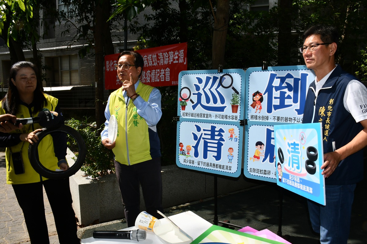 天氣漸漸炎熱,又逢登革熱流行旺季,彰化市長林世賢關心市民健康,27日召開登革熱防治誓師記者會,宣布啟動全市防疫總動員機制,呼籲市民一起動起來「消滅病媒蚊~戰勝登革熱」,而為了確實杜絕登革熱病媒蚊孳生源,民眾應從平日做起,落實「巡、倒、清、刷」不讓蚊子幼蟲生長,避免防疫漏洞,並強調自我居家環境檢查與落實環境清理非常重要,唯有如此才能遠離登革熱。