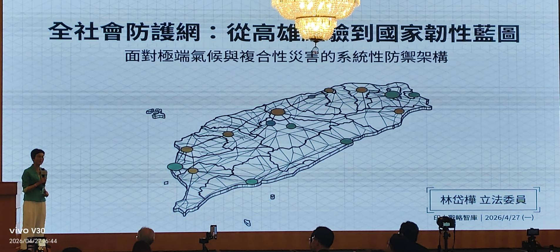 立法委員林岱樺以「全社會防護網」為題提出政策藍圖,直指台灣長期以來偏重災後復原,已無法因應高頻高衝擊災害,必須轉型為主動預防體系。