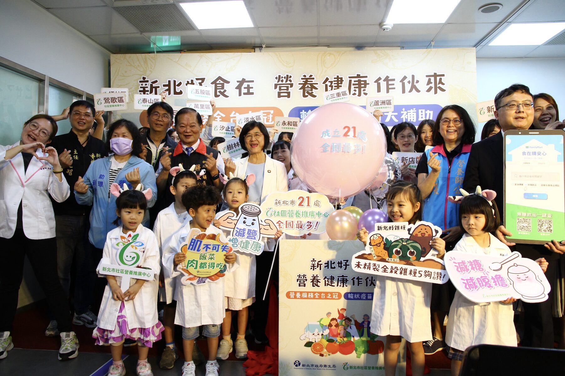 新北市設立21處「社區營養推廣中心」為全國最多。透過營養師駐點與巡迴,全市29區皆有提供營養服務,讓市民都能獲得專業且可近的營養支持。