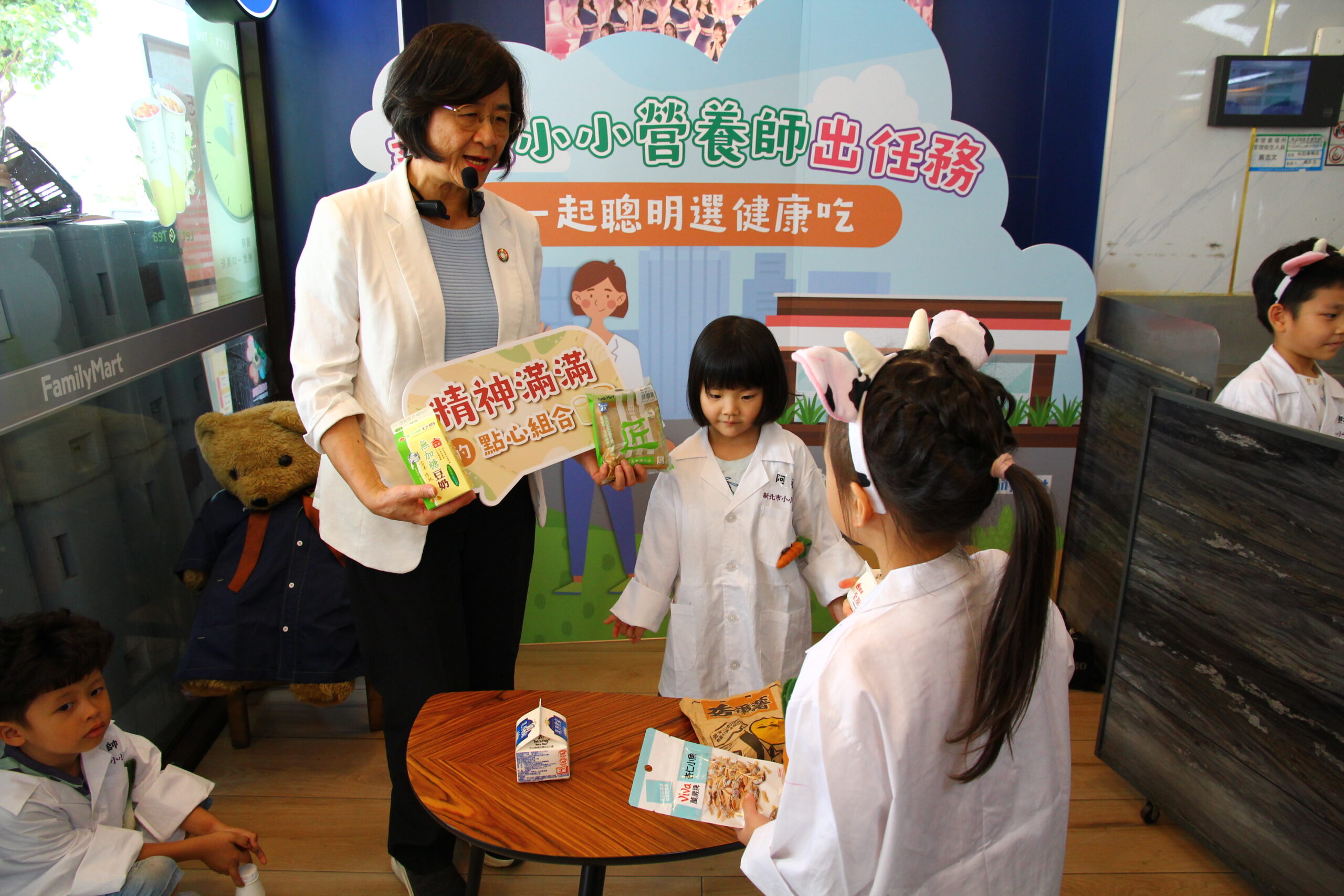陳潤秋表示為讓健康飲食融入日常生活,本次社區營養推廣中心與便利商店合作「小小營養師」活動,教導民眾選購健康餐食及認識食品標章。同時響應新北鮮奶幸福週,舉辦「全家一起喝鮮奶」活動,新北動健康APP會員於115年4月29日起可使用健康幣兌換鮮奶(限量1,000份),鼓勵家長與孩子一同實踐健康飲食。