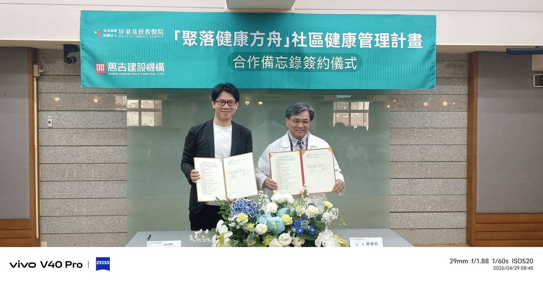 ▲屏基院長吳榮州與萬吉建設董事長賴彥良共同簽署。(圖/記者戴英薇)