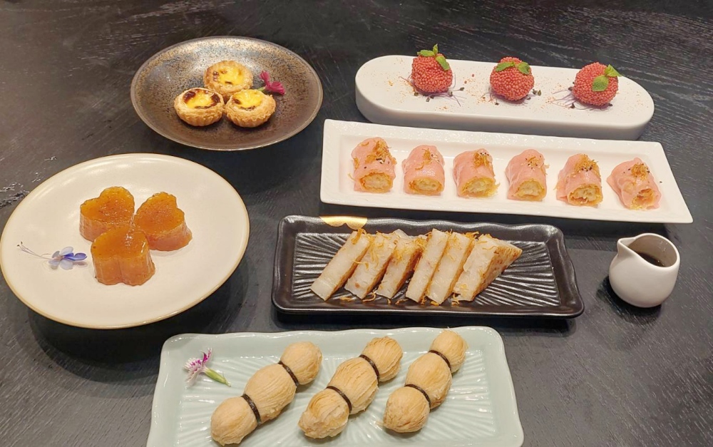 在經典之上融入當代美學語彙,如春風如意腸粉、蓮蓉芝麻球、紅塵妃子笑等點心,於傳統工藝之中注入視覺與口感的雙重層次,使每一道作品兼具文化延續與當代詮釋。