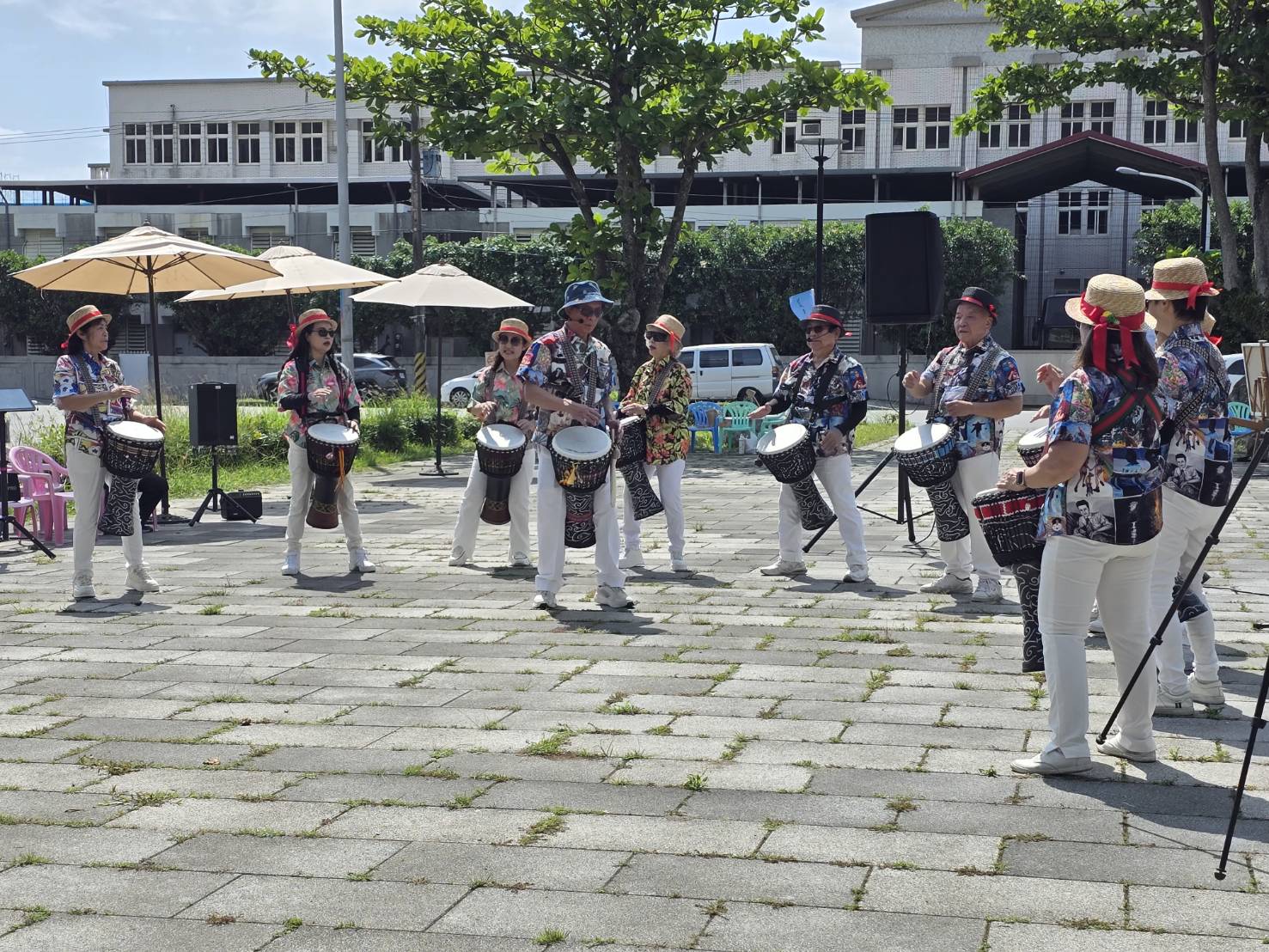 ▲「花蓮婦女家庭合唱團」總監陳政宏引鼓表演揭幕。