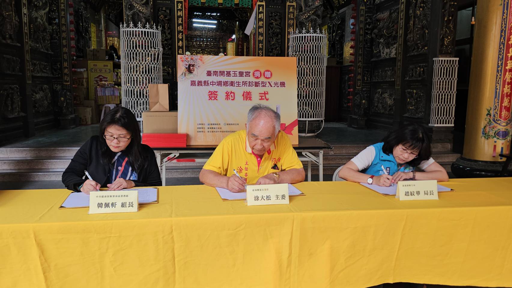 為提升偏鄉醫療可近性,臺南開基玉皇宮捐贈1台價值200萬元「高頻式診斷型X光機(DK Accuray 525R)」,供嘉義縣中埔鄉衛生所使用。29日下午在健保署組長韓佩軒見證下,由嘉義縣政府衛生局長趙紋華、玉皇宮主委涂大松共同簽署備忘錄。