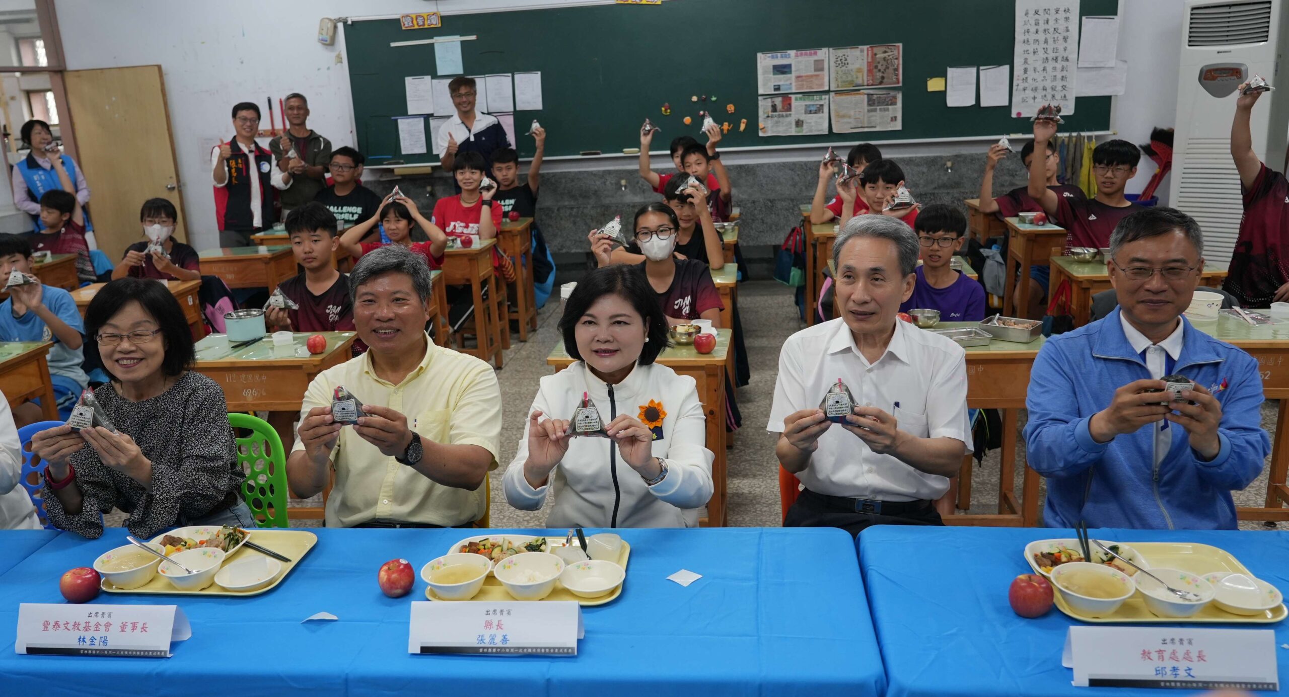 雲林縣政府今(30)日於建國國中舉行「雲林縣營養午餐每週一餐有機米」記者會。宣布全縣國中小已全面實施「每週一餐有機米」,由縣府攜手在地企業推動,提供學童健康飲食並深化食農教育與永續理念。活動由雲林縣長張麗善、豐泰文教基金會董事長林金陽及相關局處代表與有機農民出席,並由學生分享食農教育成果,現場也安排御飯糰製作體驗。