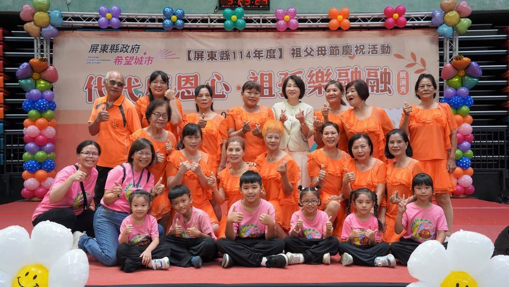 【記者戴英薇/屏東報導】   為歡慶一年一度的祖父母節,屏東縣政府於屏東縣立體育館舉辦以「代代感恩心 祖孫樂融融」為主題的慶祝活動,邀請來自全縣各地樂齡學習中心及現場參與的民眾,共超過500人齊聚一堂,縣長周春米表示,藉由系列慶祝活動,推廣尊老愛老敬老護老理念,鼓勵年輕一代親近長者,並珍惜祖父母寶貴的人生智慧與生命故事。