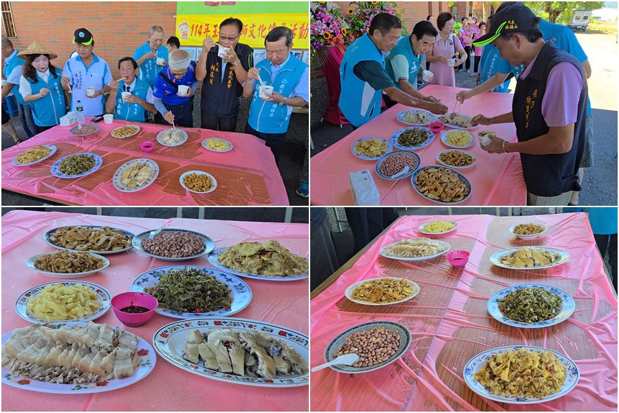 ▲忙完插秧農事,眾人大啖八菜一湯插換飯。(圖/陳木隆攝)