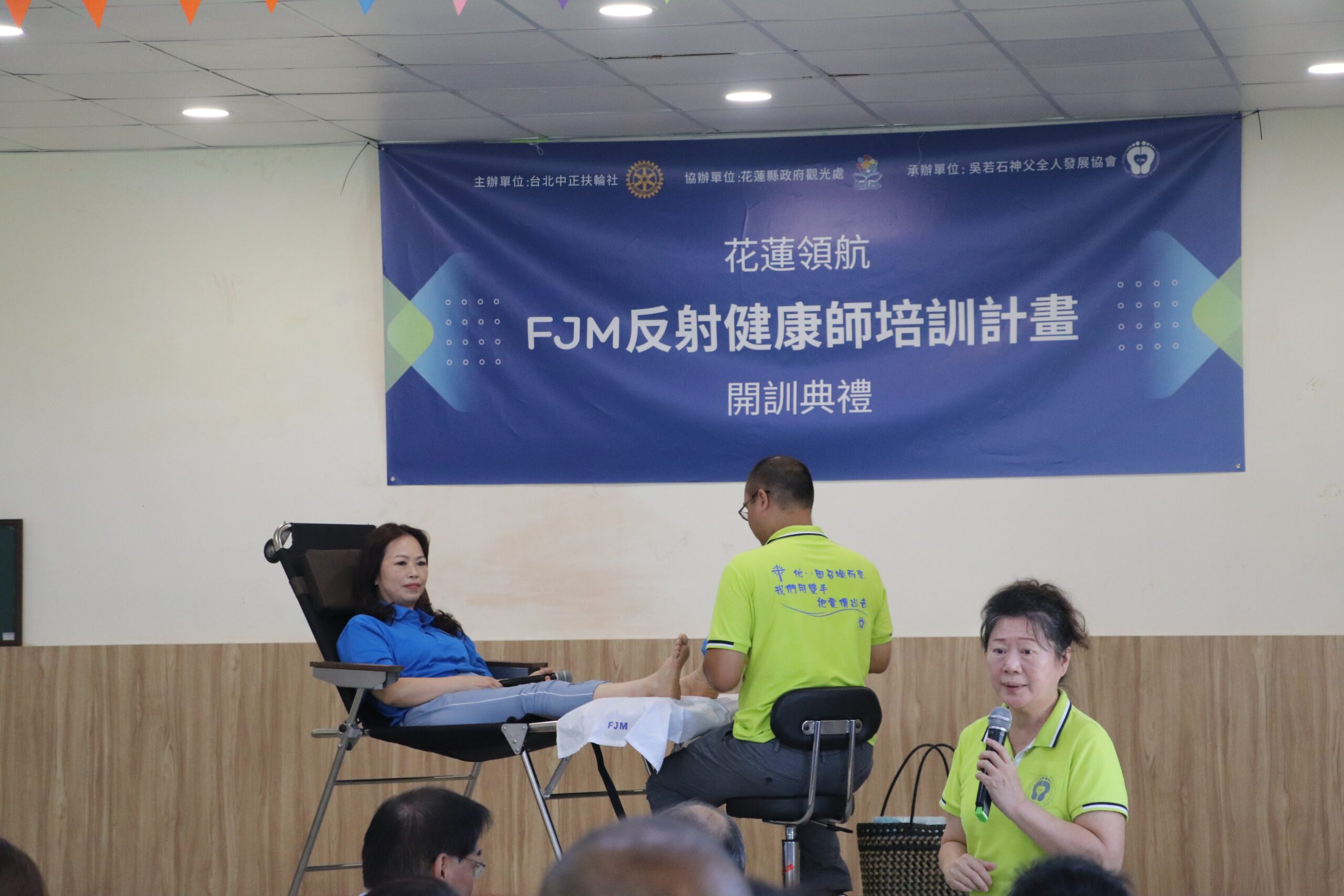 「FJM 足部反射健康師培訓計畫」今(30)日於吳若石神父足部健康服務中心(花蓮市北濱街4號)正式開訓。此計畫由花蓮縣政府攜手台北中正扶輪社、吳若石神父全人發展協會共同推動,將用三年時間分階段培育 108 名通過國際認證的健康師,並與旅宿產業串接,為花蓮觀光導入新服務亮點與在地就業動能。首梯 36 名學員結訓後,將可即時投入旅宿、夜市、市集與社區長照等場域服務。