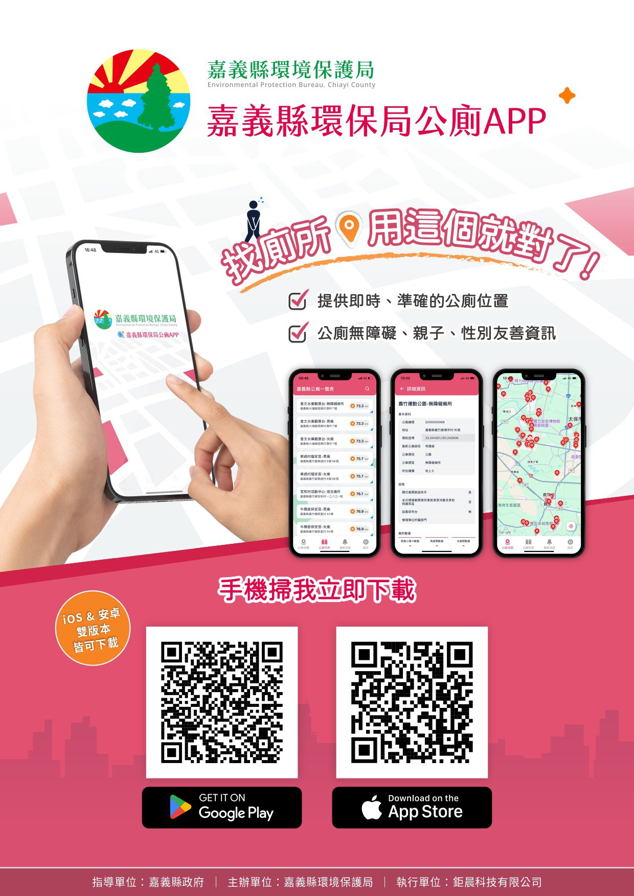 環保局表示,推廣「嘉義縣環保局公廁APP」是希望透過全民參與,共同檢視與提升公廁使用環境,逐步建構更友善、舒適的如廁空間;「嘉減碳」粉絲團的經營,則肩負擴散縣府節能減碳、垃圾減量、資源回收等政策訊息的重要功能。