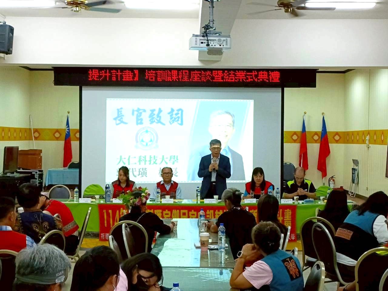大仁科技大學校長郭代璜則指出,感謝瑪家鄉公所的信任,讓大仁科大能憑藉專業師資深入社區,將學術研究與在地需求緊密結合,落實大學社會責任(USR),並在產業培力與文化傳承上持續發揮大學的社會影響力。