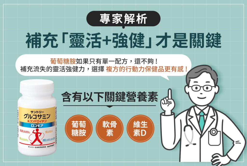 很多人選購葡萄糖胺產品,可能不會特別在意產品是單方還是複方成分,但簡文仁提醒:「單一成分不足以支援行動力,需要多重營養支持。」