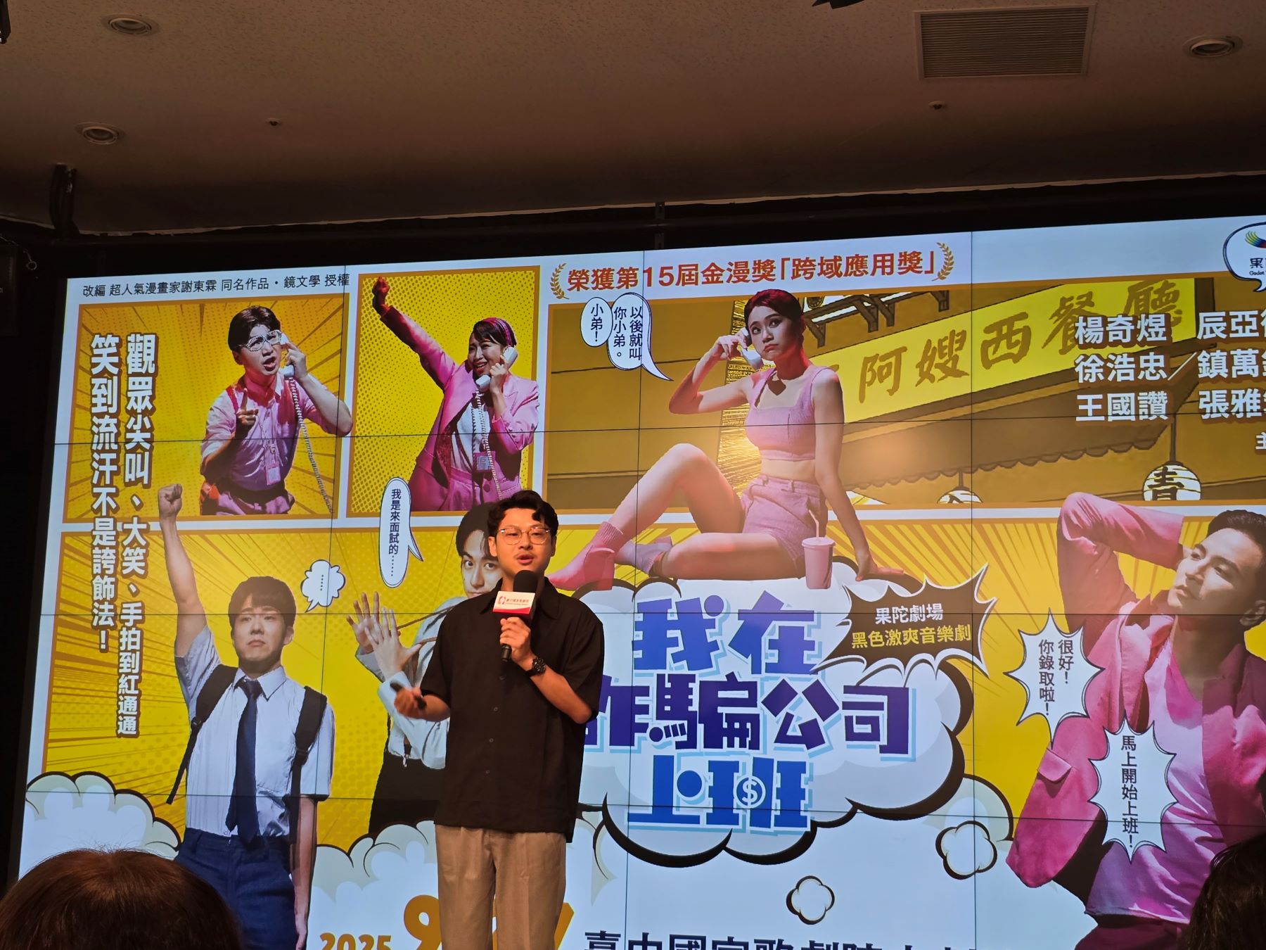 改編自人氣漫畫的果陀劇場音樂劇《我在詐騙公司上班》,2025年全臺巡演最終站將於9月27日來到中劇院,由楊奇煜、辰亞御、徐浩忠、王國讚、張雅筑領銜主演,劇情講述一位大學畢業生誤打誤撞進詐騙公司,意外發現自己是詐騙奇才!5位實力派演員唱跳全場,11首原創歌曲融合爆笑情節與反詐議題,還有養眼「肌」情的畫面。製作團隊更為4度加演賦予新意,臺中場次安排《歹路母湯行》、《我心已打烊》2種結局。導演蘇昱瑋表示:「在詐騙猖狂的時代,希望用黑色幽默,做出反映社會現象的人性音樂喜劇,這個劇本有很強的多元觀點潛力,因此大膽讓觀眾自行選擇結局,從角色的旅程中找到共鳴。」