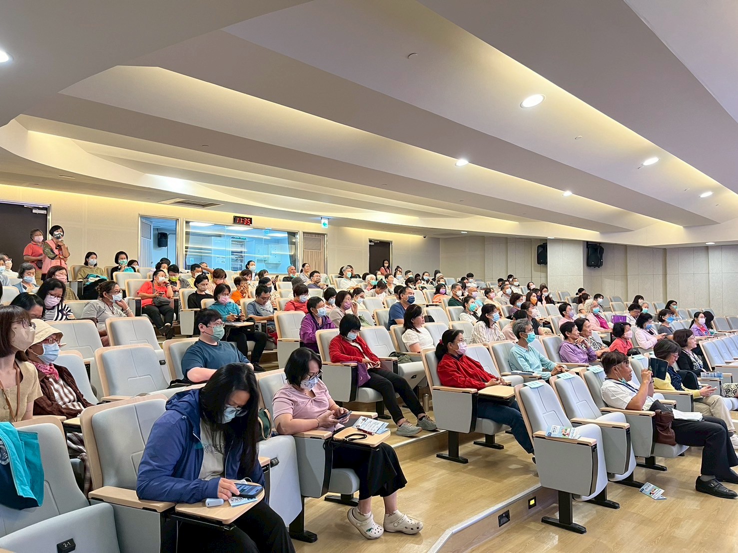 研討會安排三場專題演講,兼具國際視野與在地經驗。屏東科技大學廖曼利助理教授首先以「高齡照護與園藝治療的實務應用」揭開序幕,分享園藝活動如何透過照護現場導入感官刺 激與社交互動,增進長者自我價值感。接著,由加拿大布洛克大學副教授謝佩純(Pei-Chun Hsieh)線上連線,介紹國外輔 助療法的發展現況與臨床應用,帶給與會者國際比較與借鏡。最後,台灣師範大學林儷蓉教授則深入探討「輔助療法在失智 或長照中的延伸策略」,強調音樂、藝術與舞動對延緩退化與促進心靈支持的助益。