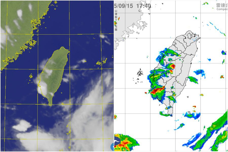 今天9月15日午後對流雲系發展旺盛,易有短延時強降雨,氣象署下午16時許發布大雨特報,嘉義山區有局部大雨發生的機率,請注意雷擊及強陣風。
