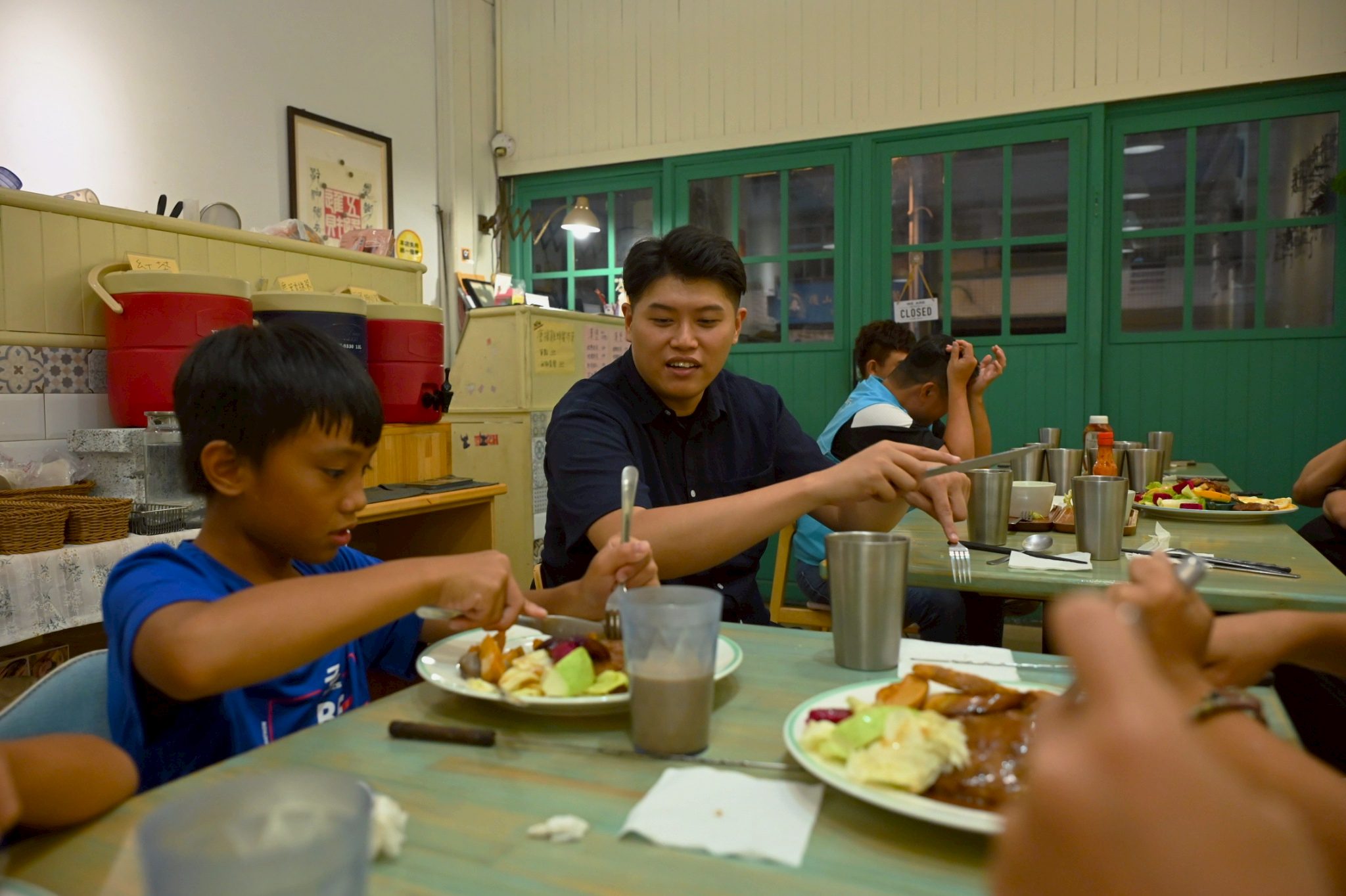 ▲中正國小棒球隊員享用牛排餐,高興極了。
