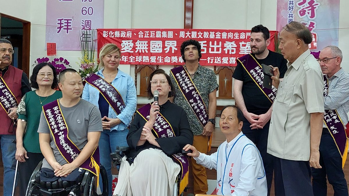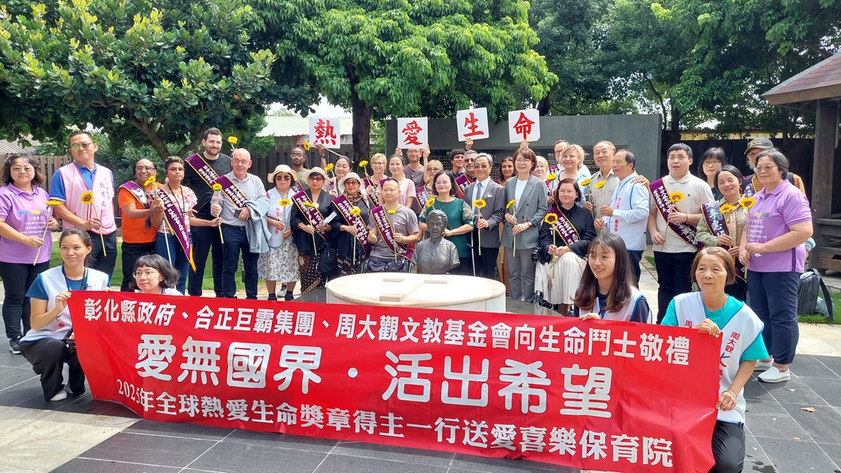因為天生「不完美、卻造就今日不平凡」!第28屆「全球熱愛生命獎章」獎落二林,由喜樂保育院院長林玉嫦榮獲,而今年又逢保育院創立一甲子。22日上午周大觀文教基金會特別舉辦「全球熱愛生命獎章交流活動」,邀請合正巨霸集團總裁蕭義明、立委黃秀芳、彰化縣政府教育處督學賴俊嘉、以及多國生命獎章得主齊聚喜樂保育院,實地感受創辦人瑪喜樂女士不分國籍、關照弱勢的大愛,讓自我生命因愛而潤,因愛而放光芒,擴大正向影響力。
