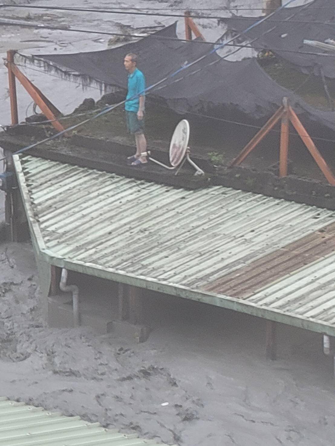 ▲有人站在屋頂上看著滾滾泥流,無語問蒼天。