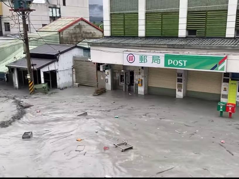 ▲馬太鞍溪堰塞湖溢流成災,光復鄉市區頓成澤國。