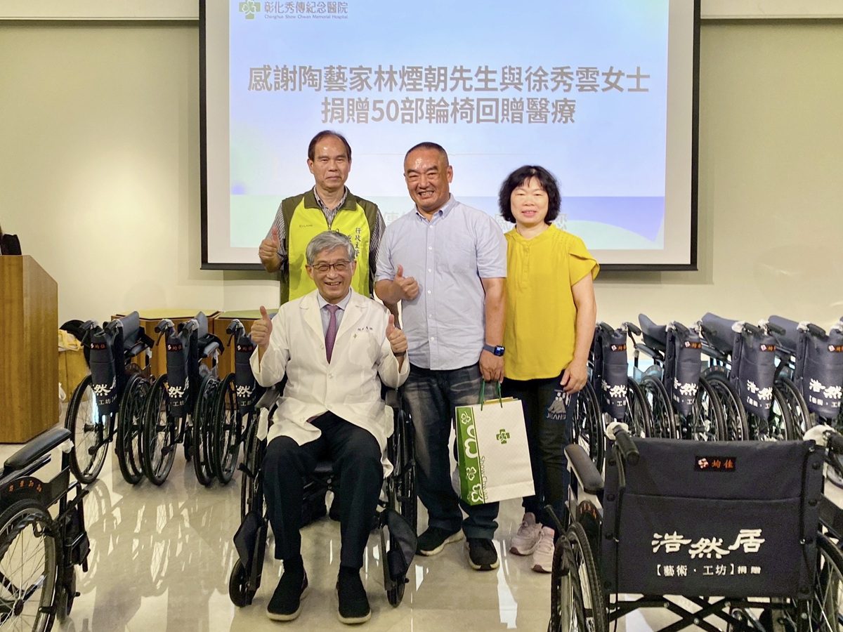 知名陶藝家林煙朝先生,不僅以其精湛的陶藝作品舉辦多場個展,廣受民眾喜愛,更長年致力於公益慈善,以藝術轉化為溫暖的力量。林先生感念彰化秀傳醫院長期的貼心服務,於今(9/23)日特別捐贈50部輪椅回饋醫院,期望能改善行動不便病人的就醫體驗,將這份溫暖延續給更多需要幫助的人。