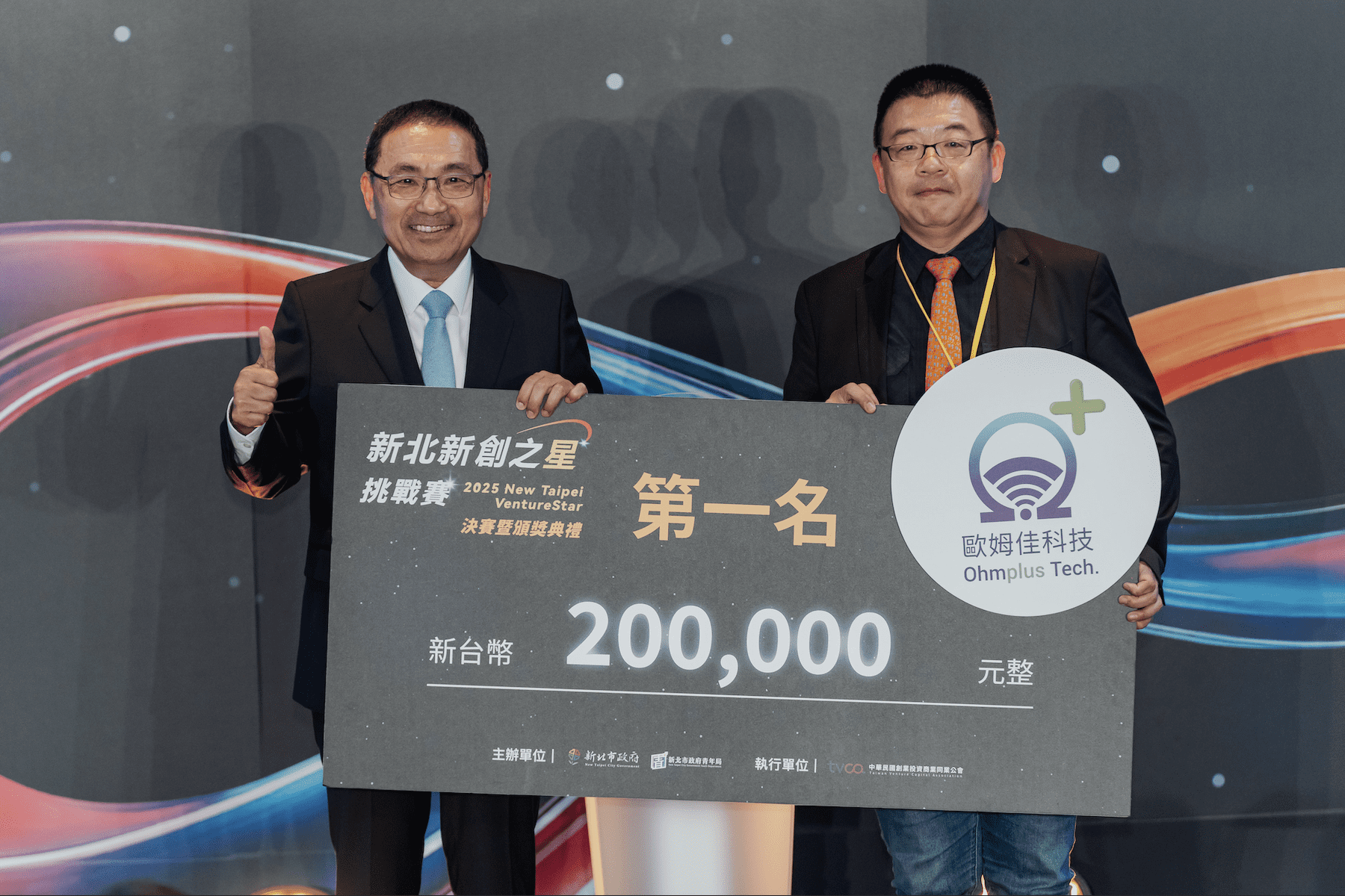 由新北市青年局主辦、首創結合創投陪跑機制的「2025 VentureStar 新北新創之星挑戰賽」,今(23)日冠軍出爐!由致力於提供半導體和通訊產業高效測試服務的「歐姆佳科技股份有限公司」拿下首獎,第二名為專注打造一站式整合金流雲端平台的「應援科技股份有限公司」,第三名則由致力於智慧農業與永續資材研發的「恰口科研企業股份有限公司」獲得。獲獎團隊除獲得總獎金30萬元,更將參與為期3個月的專屬「創投陪跑計畫」,正式接軌國內外投資市場。