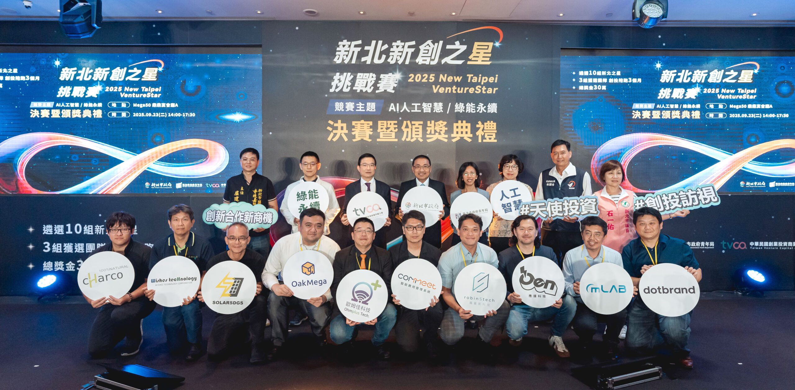 今年賽事以「AI人工智慧」和「綠能永續」為主軸,共吸引全台72組新創團隊參賽,歷經書審與Pitch Day兩階段嚴謹評選後,最終10組精銳團隊晉級決賽。今日決賽邀請10位創投與產業重量級評審共同見證新創之星誕生,獲獎團隊除競賽獎金外,更可獲得專屬量身打造的3個月創投陪跑計畫,透過與創投深度對談的機會,優化商業模式與財務體質,並受邀明年《2026台灣創投年會》登台亮相,接軌國內外投資產業;同時獲得直接進駐新北青創基地的種子資格、及未來參與重要科技展會的機會。