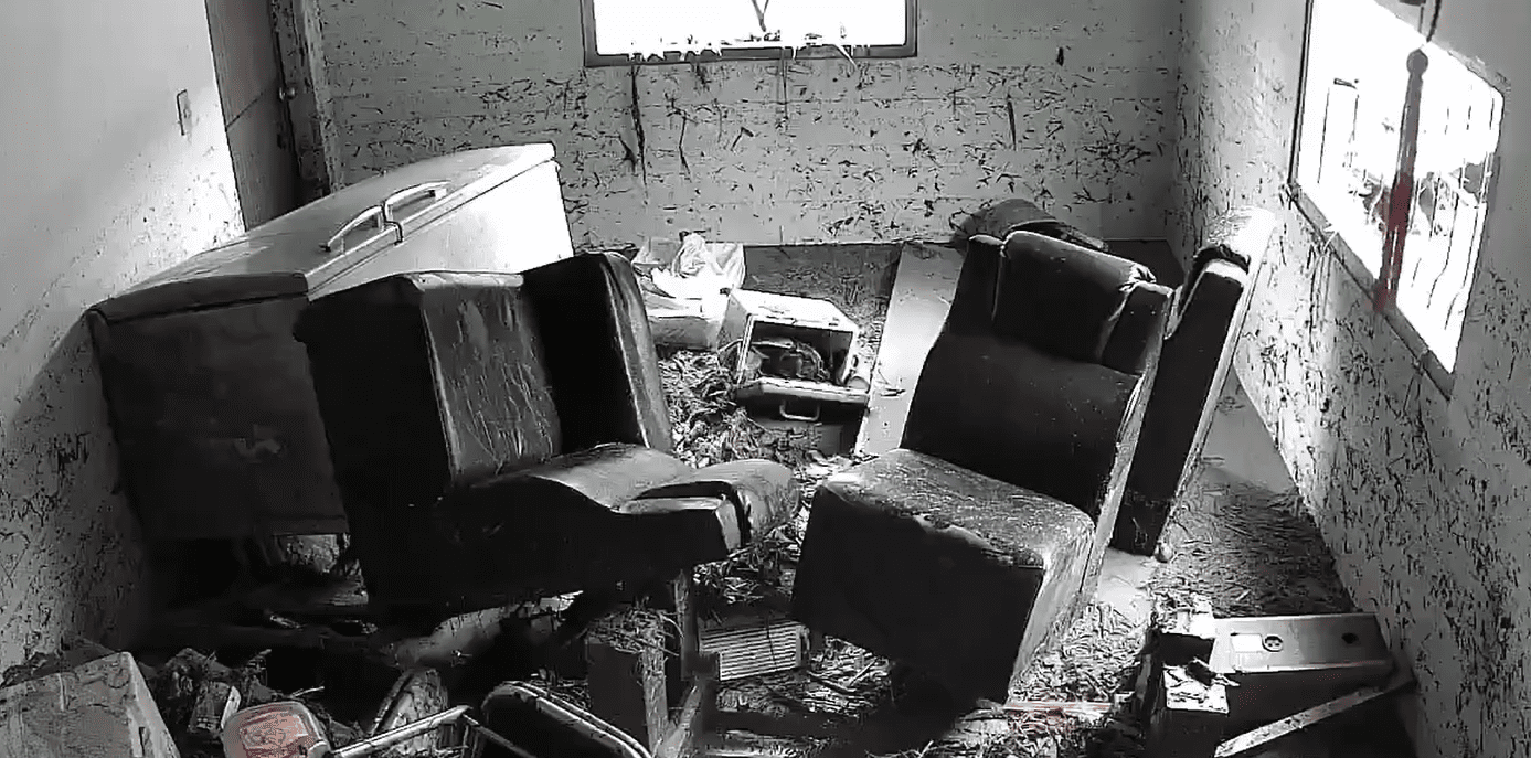 ▲受扶助的小欣受災家庭滿目瘡痍。