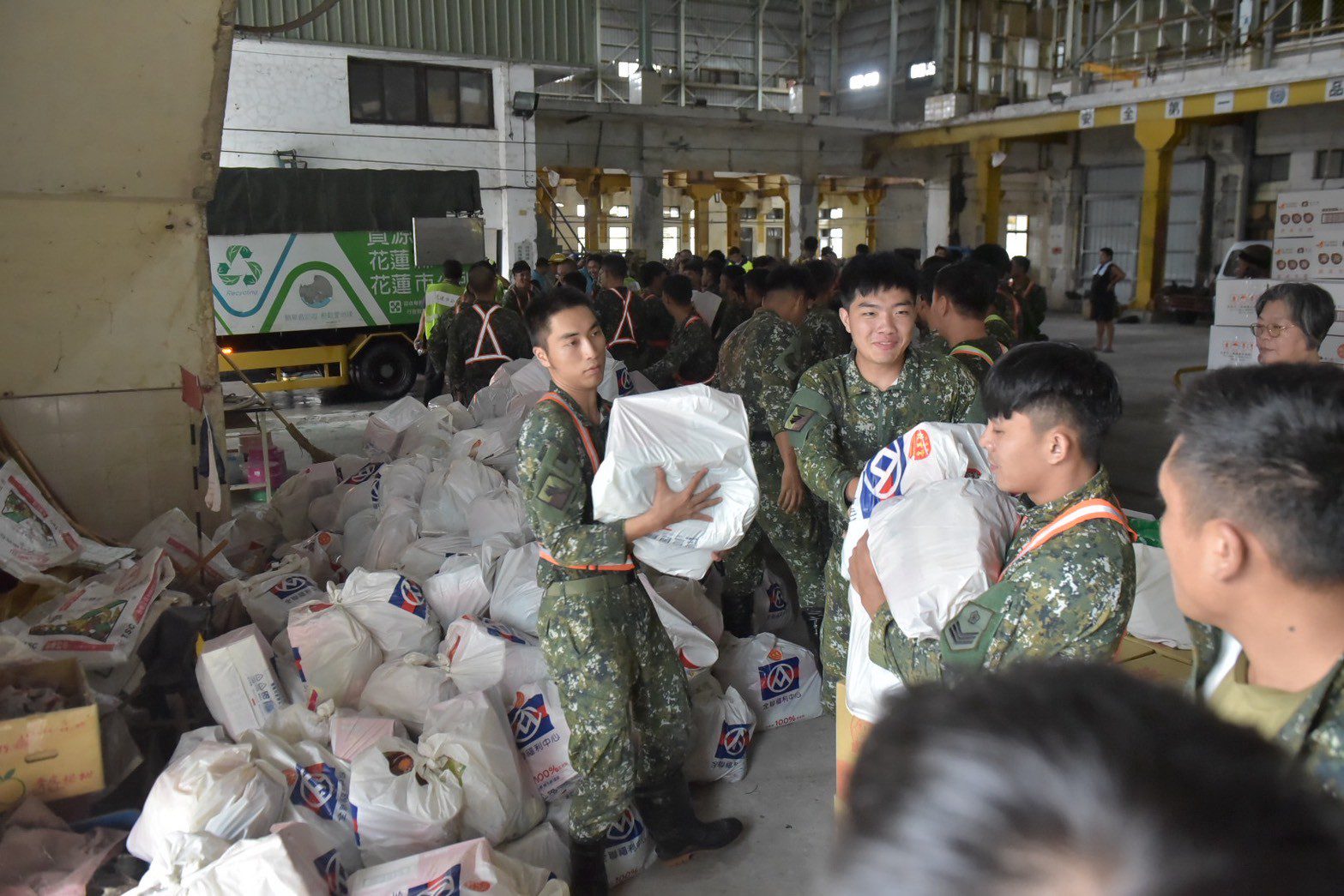 ▲東指部機步一營的國軍弟兄協助搬運物資,市長魏嘉彥特別致意。