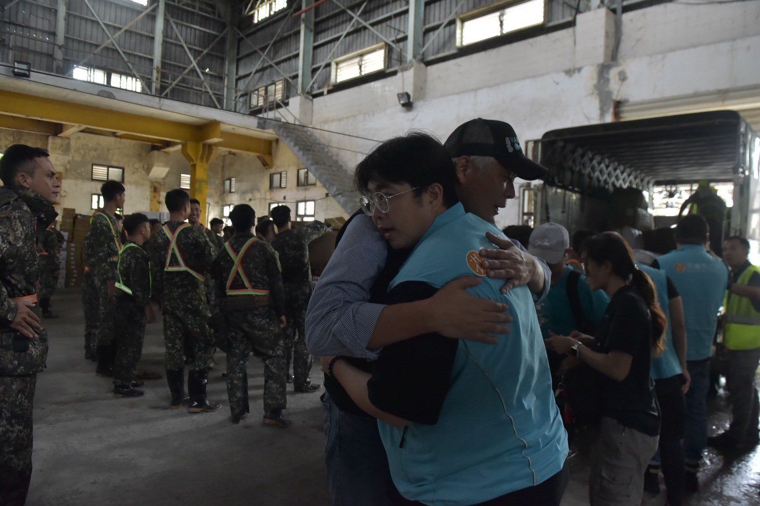 魏嘉彥感謝台糖光復糖廠提供場地作為物資暫存點,讓災後支援作業能順利進行,同時他也向東指部機步一營的國軍弟兄表達敬意,感謝協助搬運,展現軍民一家的合作精神。