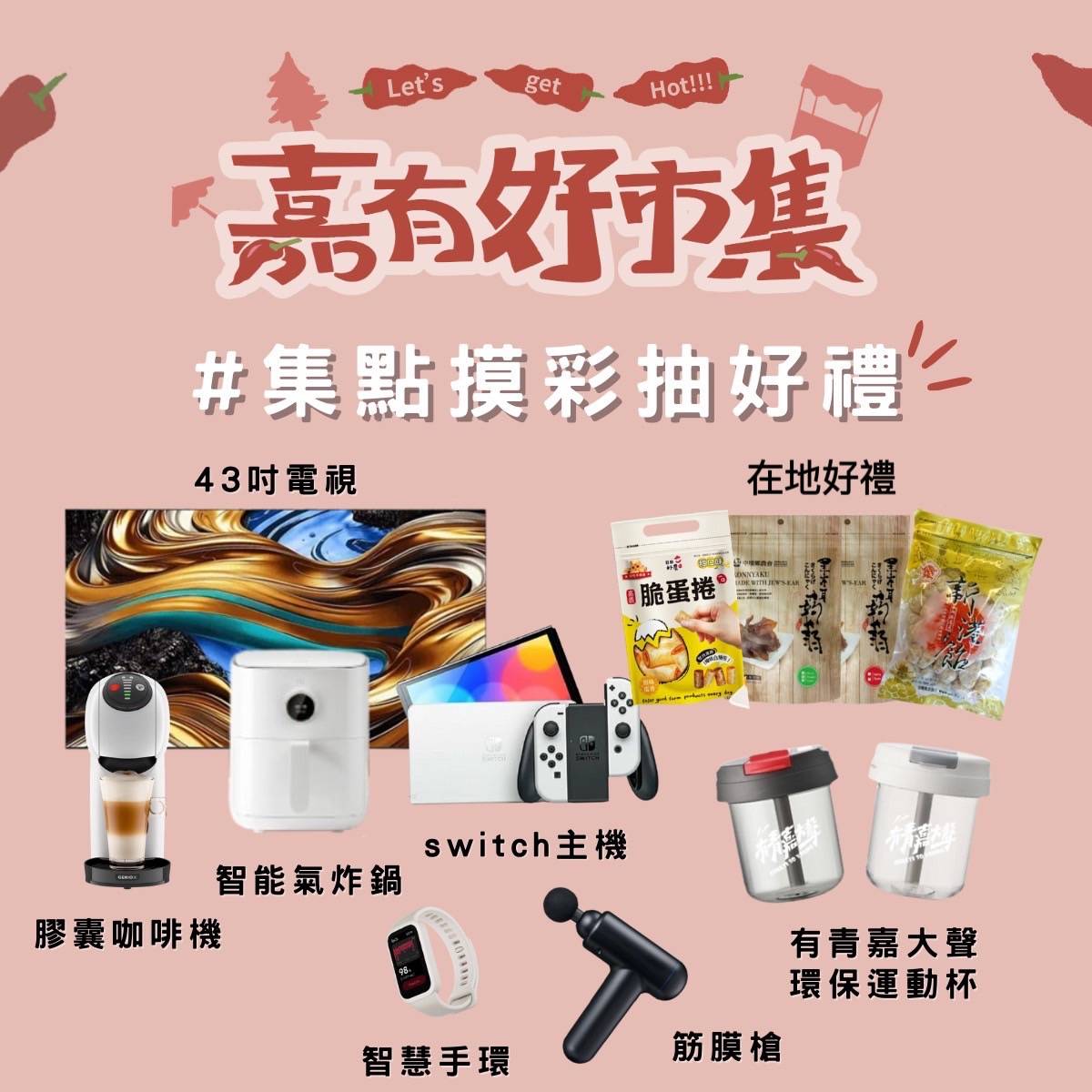 民眾在現場消費滿100元即可集點,集滿5點即可兌換限量好禮,並參加抽獎,獎品包括電視、Switch、氣炸鍋、空氣清淨機、膠囊咖啡機、手環等多項好康。