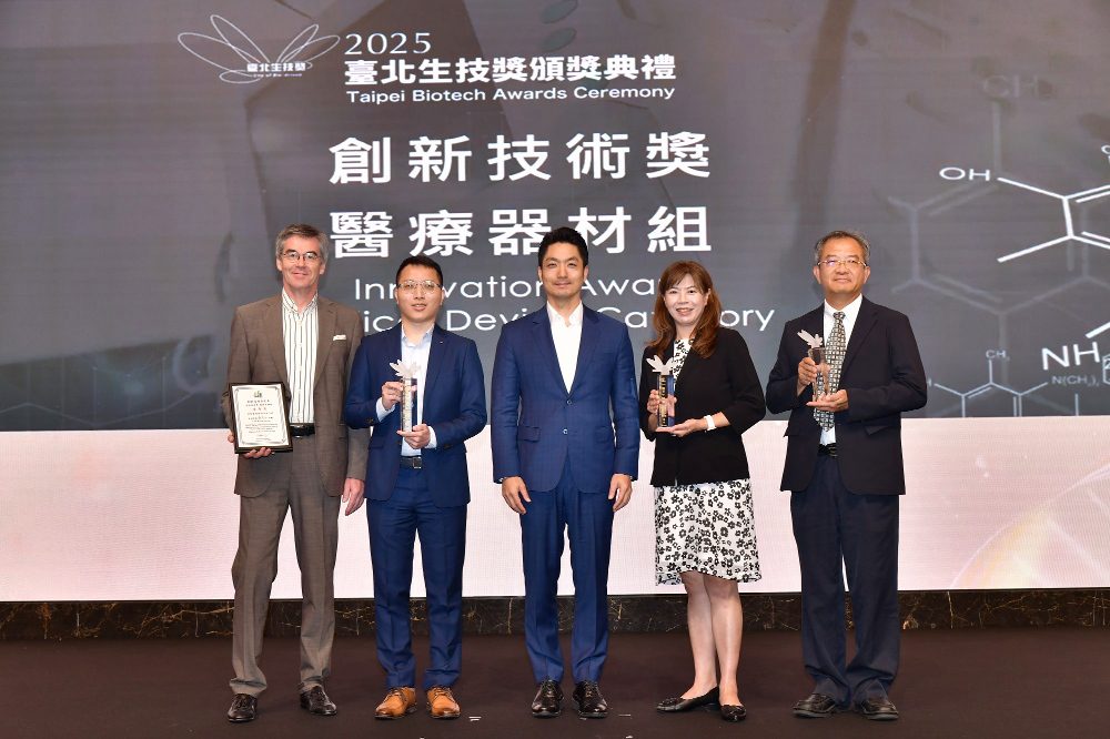 生技產業奧斯卡級榮耀「2025臺北生技獎」9/24日由蔣萬安市長親自揭獎頒發「創新技術獎_醫療器材組」、「創新技術獎_製藥組」、「創新技術獎_應用生技組」、「國際躍進獎」、及「跨域卓越獎」五大獎項及特別獎-臺北生技之星獲獎企業單位,頒發總獎金520萬元。